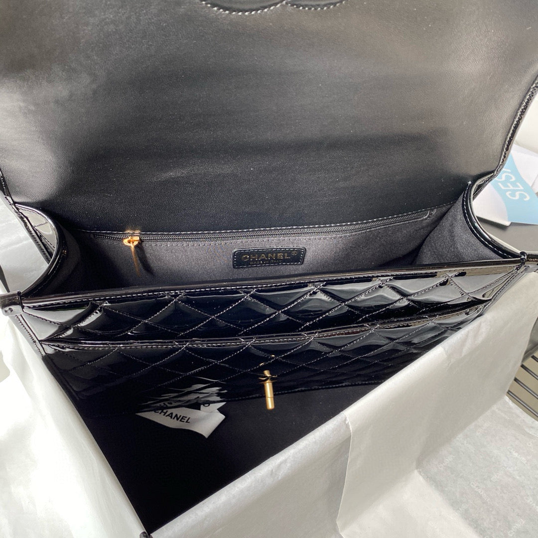 CC 25C Hobo Bag 21.5cm Top Handle Black Grained Calfskin