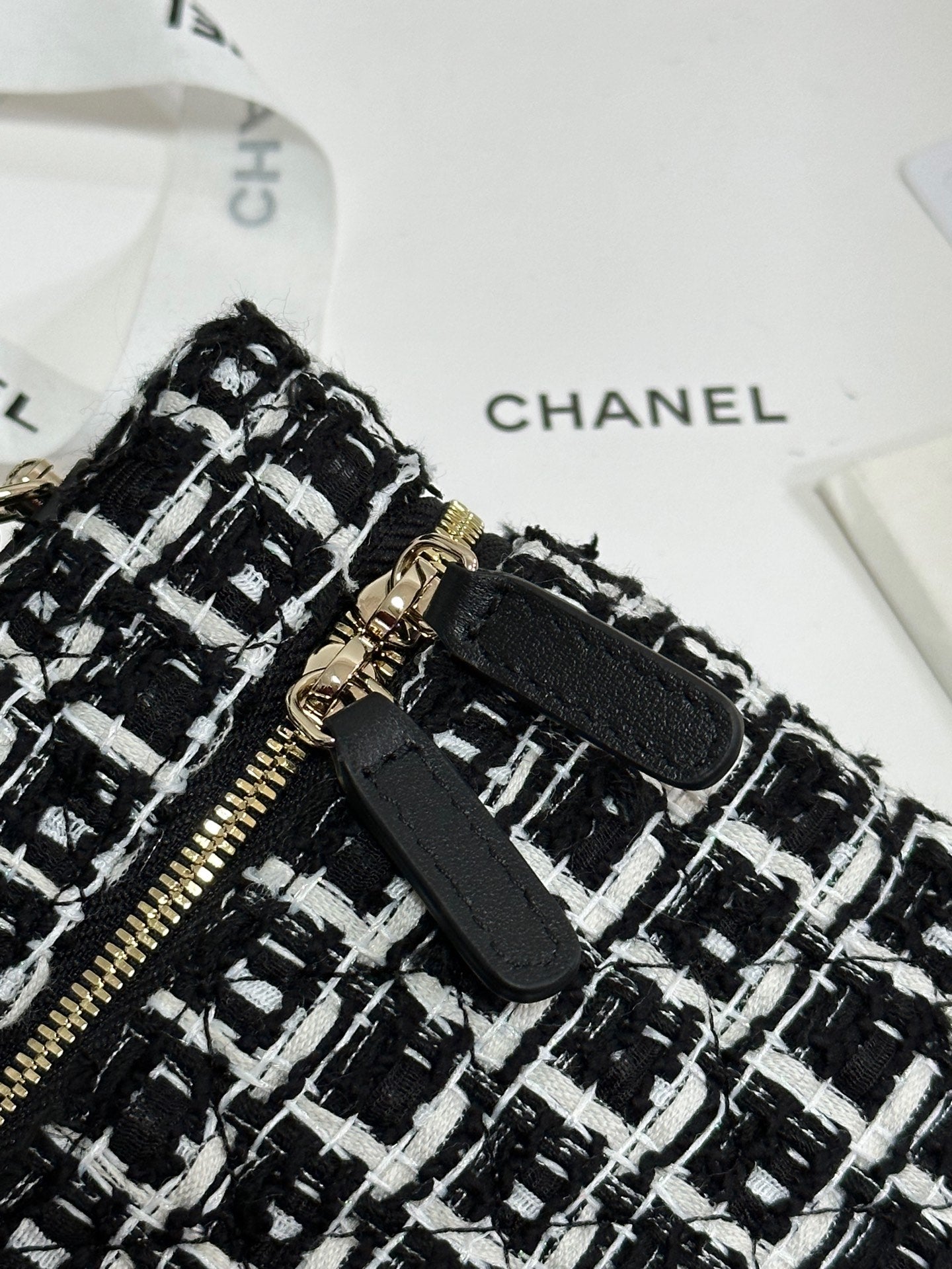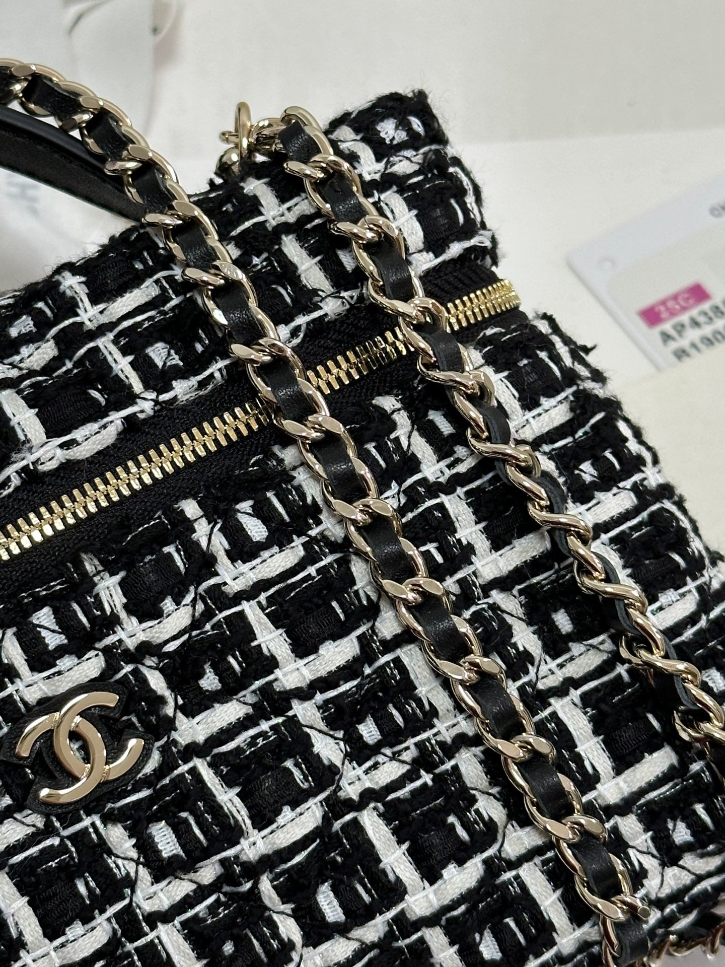CC 25C Vanity Case Black White Tweed Light Gold Hardware 243667