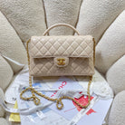 CC 25P Medium Flap Bag 25cm Top Handle Beige Calfskin Gold Hardware