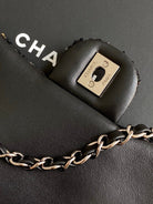 cc 25S Flap Bag 21cm Black Silver Sequin Calfskin