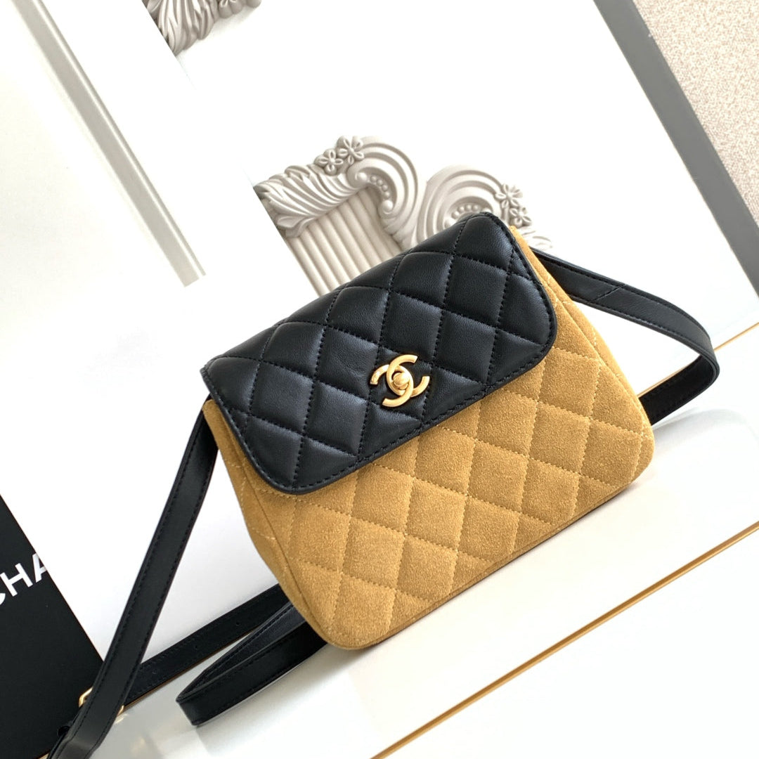 Flap Bag Mini 20cm Beige Calfskin Gold Bronze Sequin
