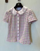 CC 25 Doll Collar Top Pink Green Tweed Fabric