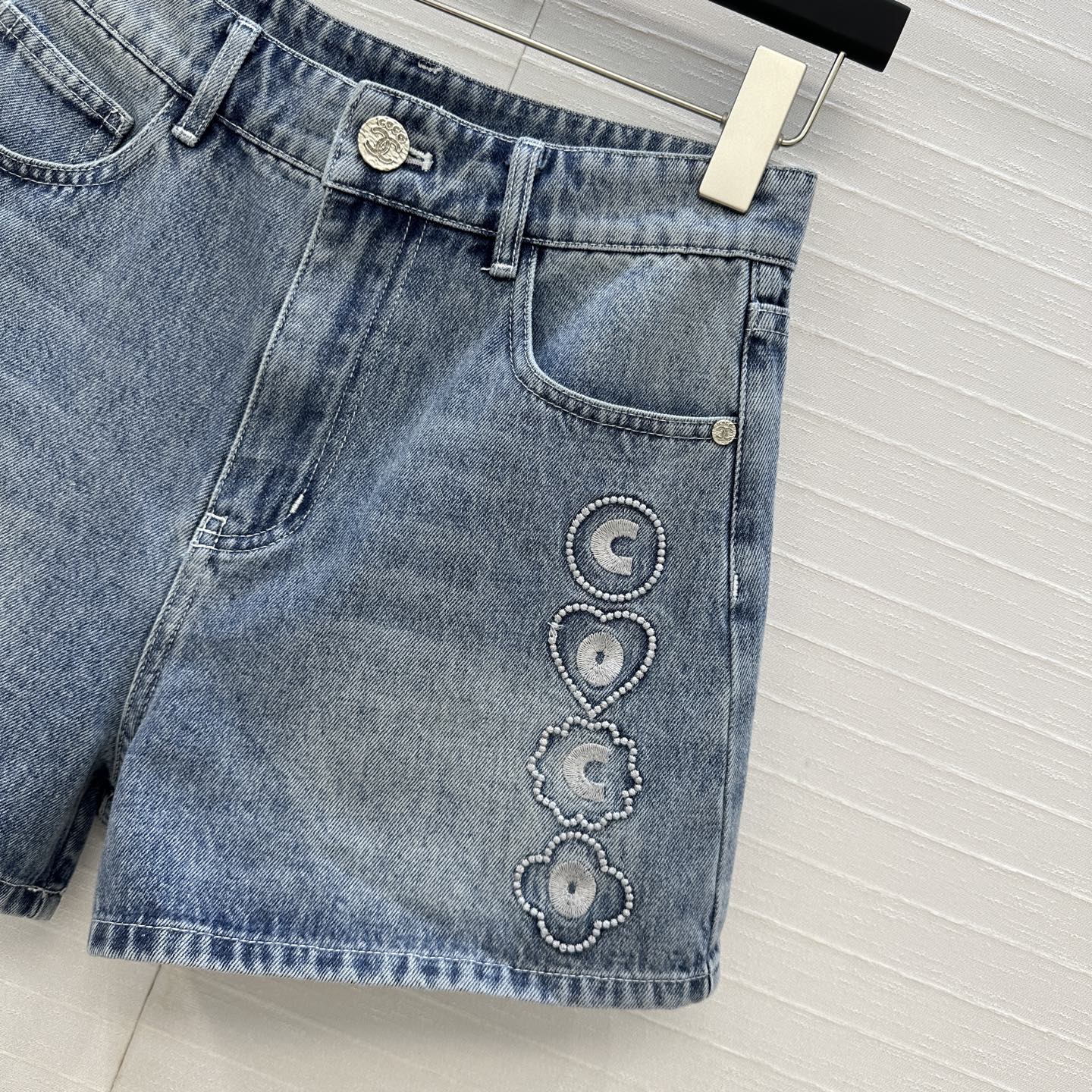 CC 25 Embroidered Short Blue Denim Cotton