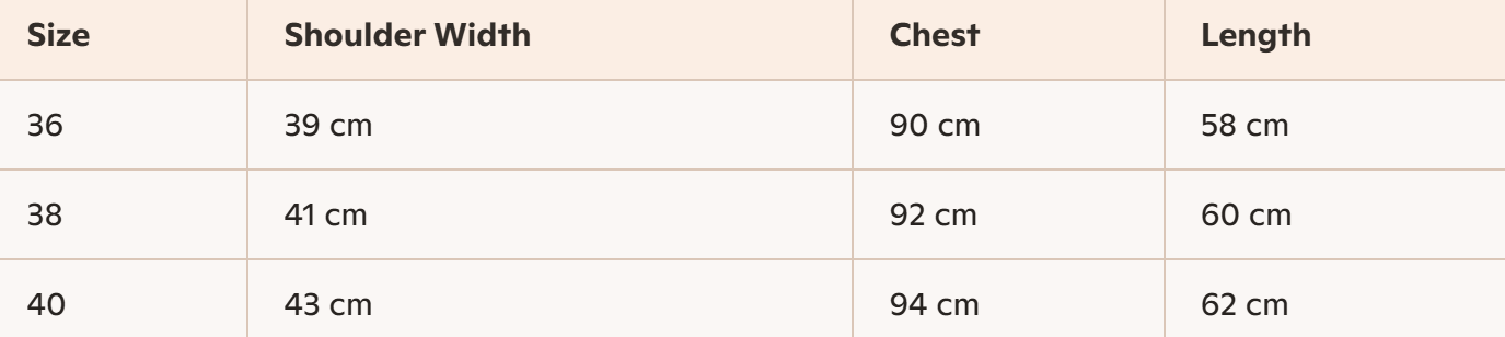 - Size : 36, 38, 40