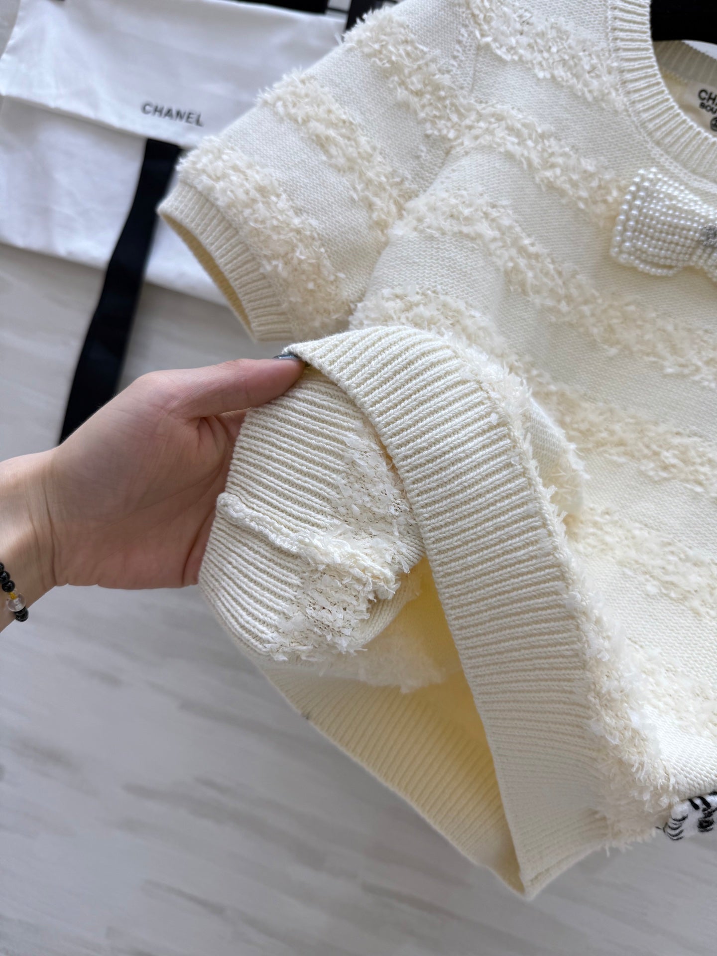 CC Short Sleeve Knitted T-shirt Ivory Imported Fabric
