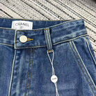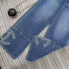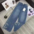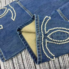 Chanel 2025 Double C Logo Beaded Straight-leg Jeans Blue Cotton 319001