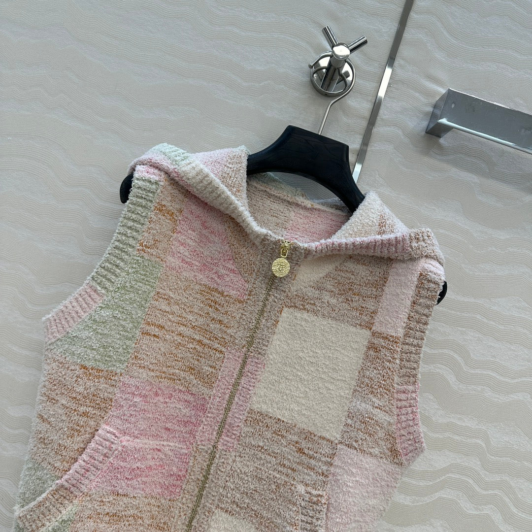 CC Hooded Vest Multicolor Polyester Acrylic Fibers Wool