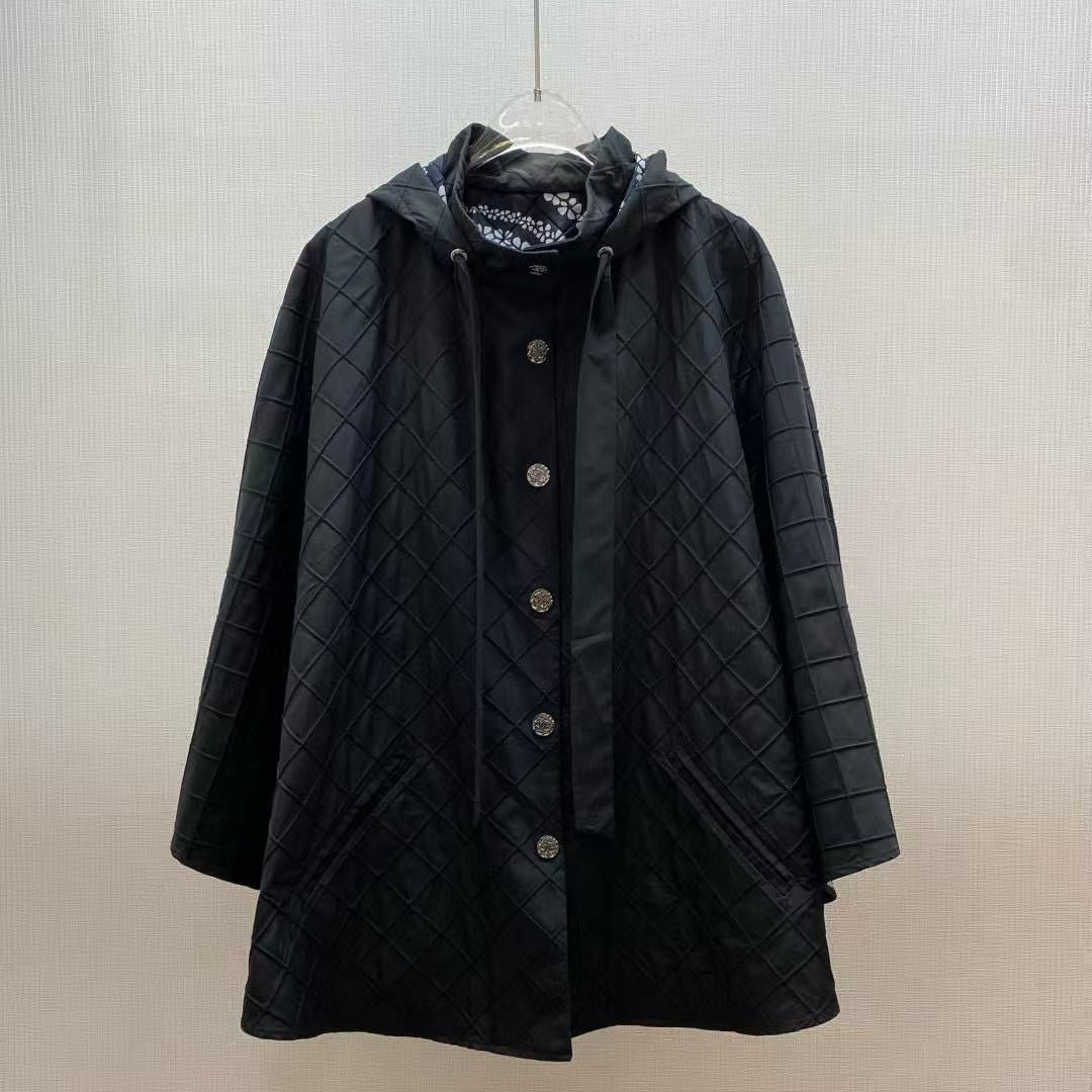 Chanel 25S Cape Coat Style 220 Black Silk Polyester