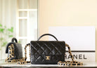 cc 24a flap bag 20cm top handle black lambskin gold hardware