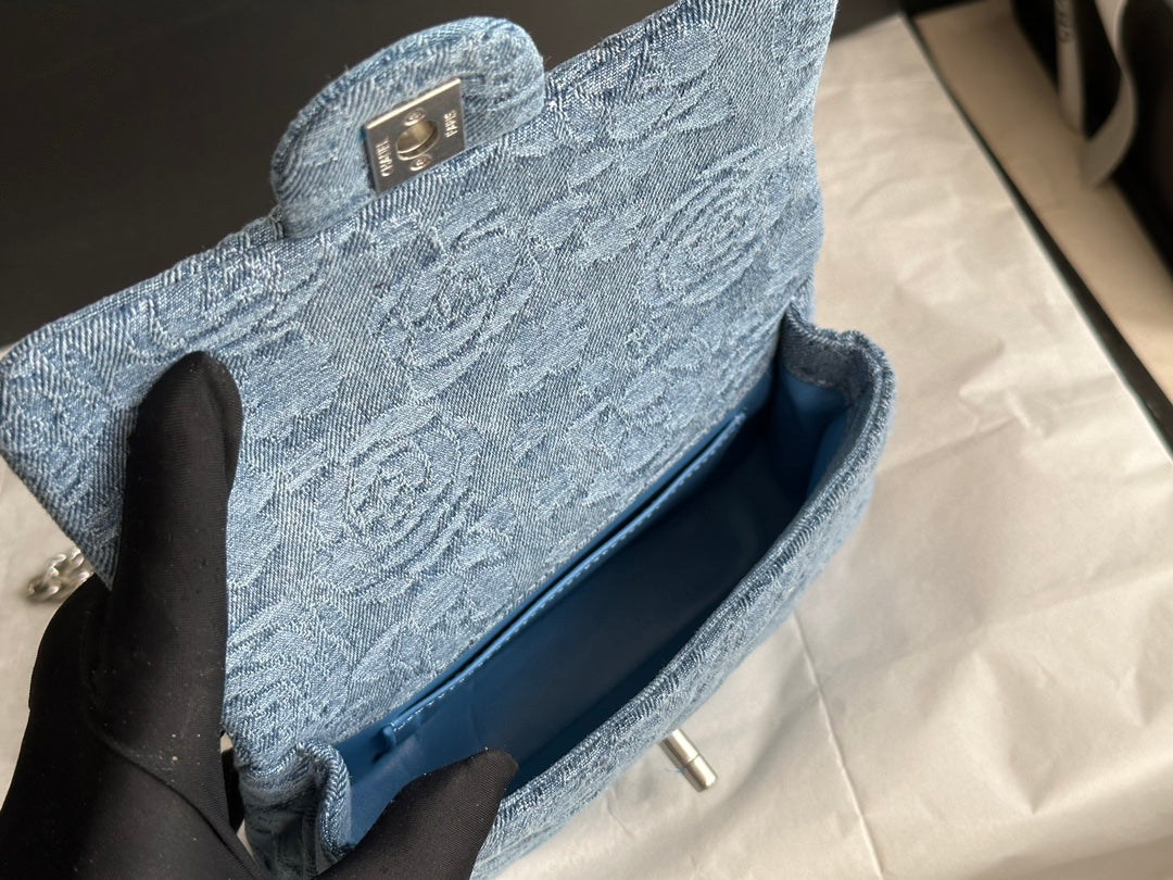 cc flap bag 12cm blue denim silver hardware