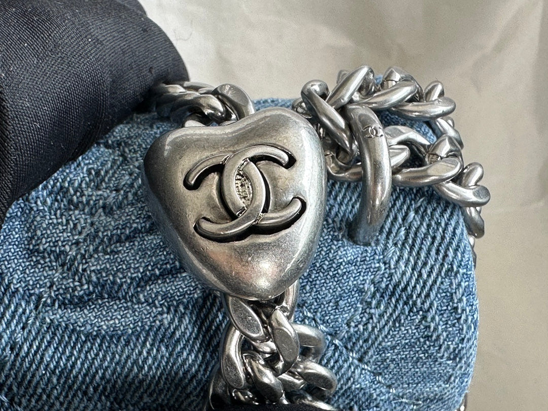 cc flap bag 14cm blue denim silver hardware