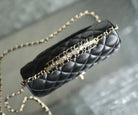 MINI RECTANGLE FLAP BAG TOP HANDLE 20CM BLACK LAMBSKIN SILVER HARDWARE