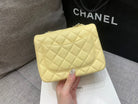 MINI SQUARE FLAP BAG 17CM YELLOW LAMBSKIN SILVER HARDWARE