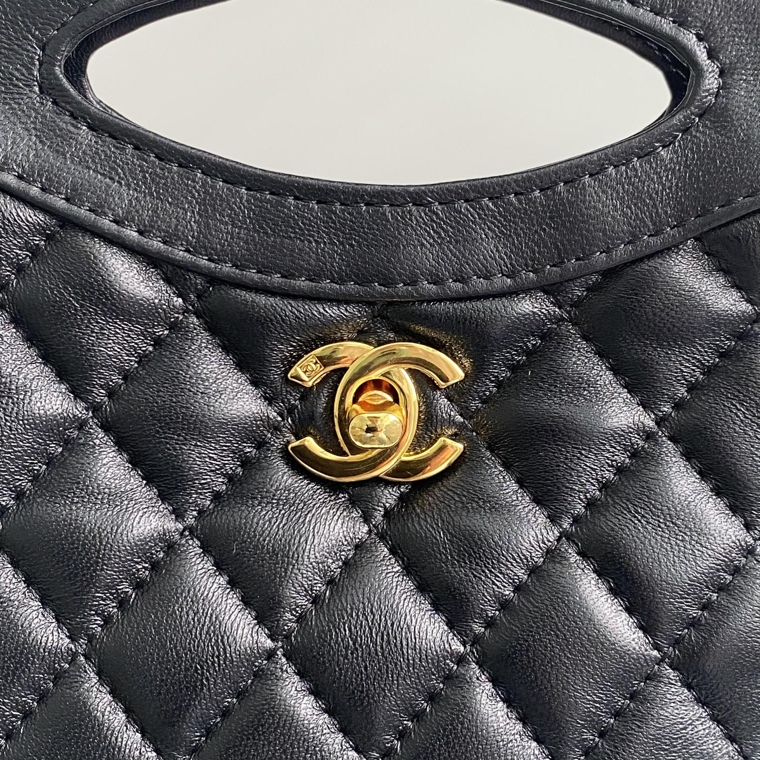 CC 25C Hobo Bag 30cm Black White Lambskin Gold Hardware