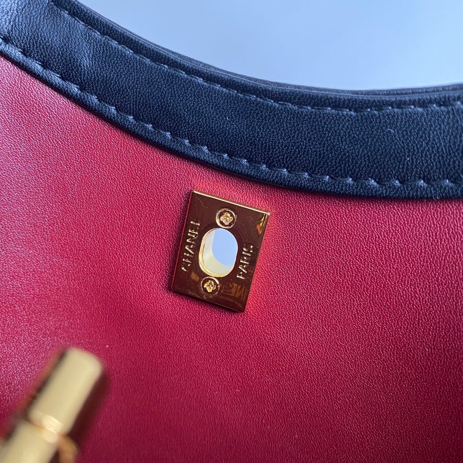 Chanel 2025 Hobo Bag 22cm Black Gold Grained Calfskin