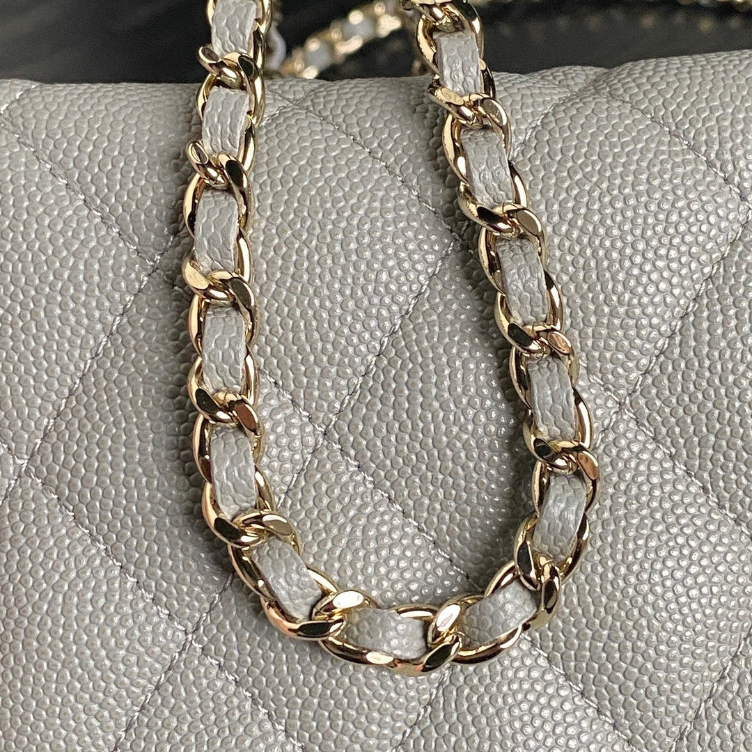 CC 25C Hobo Bag 21.5cm Top Handle Grey Grained Calfskin