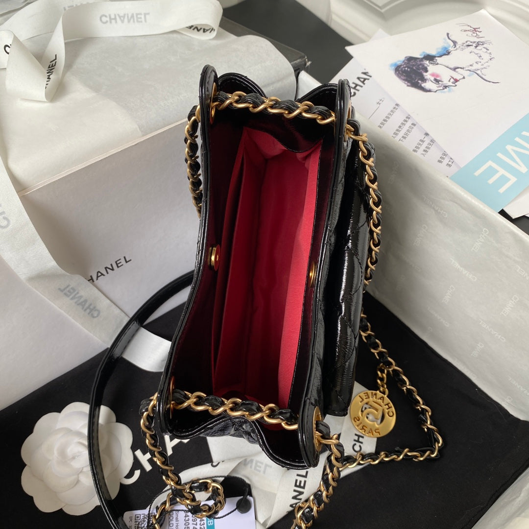 cc 24p hobo bag 28cm black lambskin gold hardware