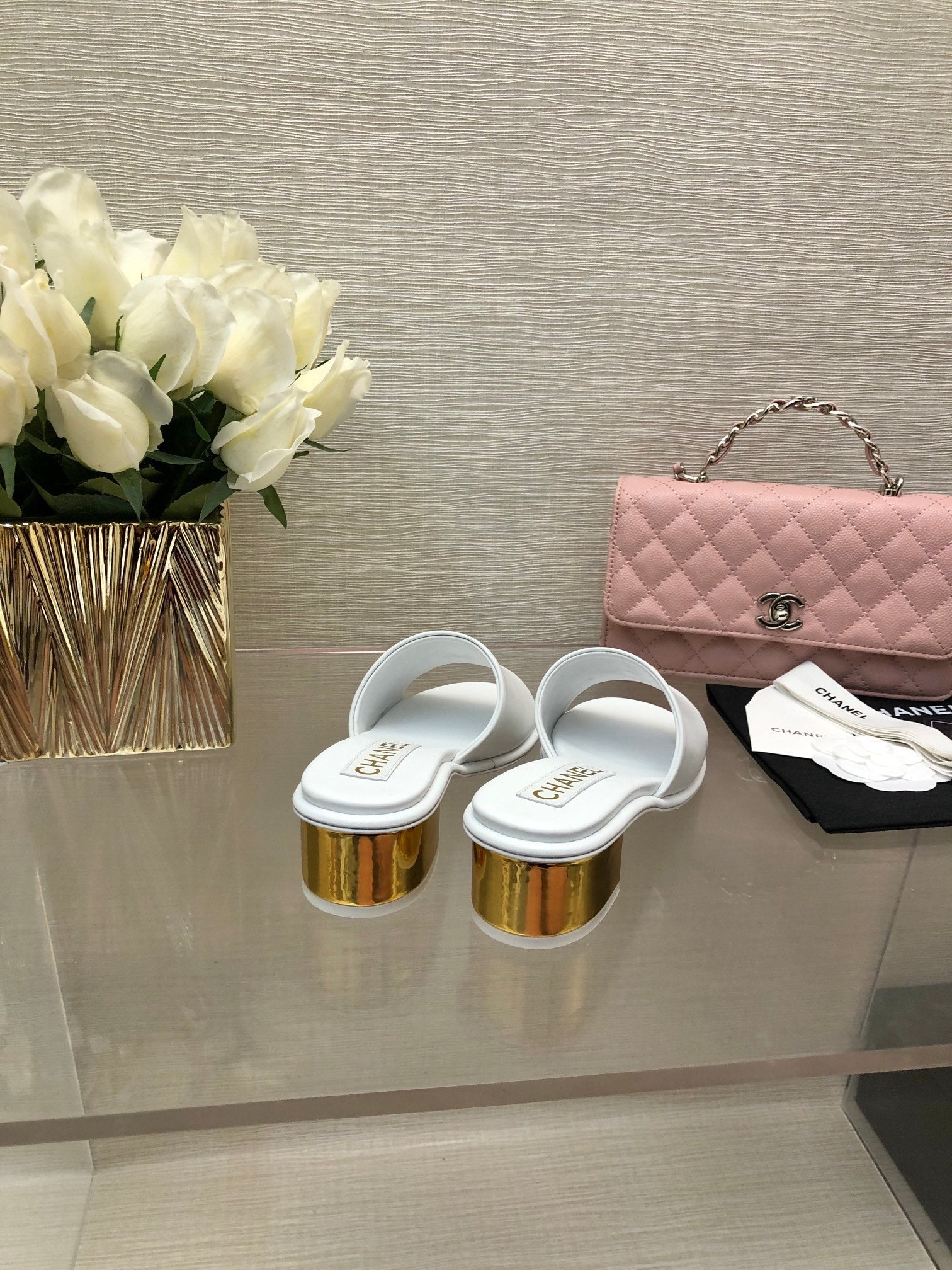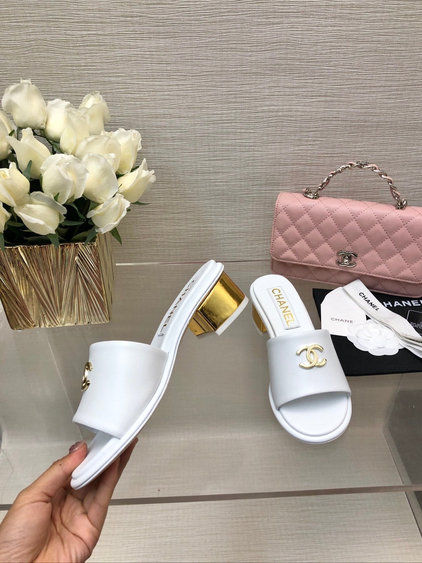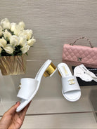 CC 25C Mid Heel Mule White Genuine Calfskin 212954