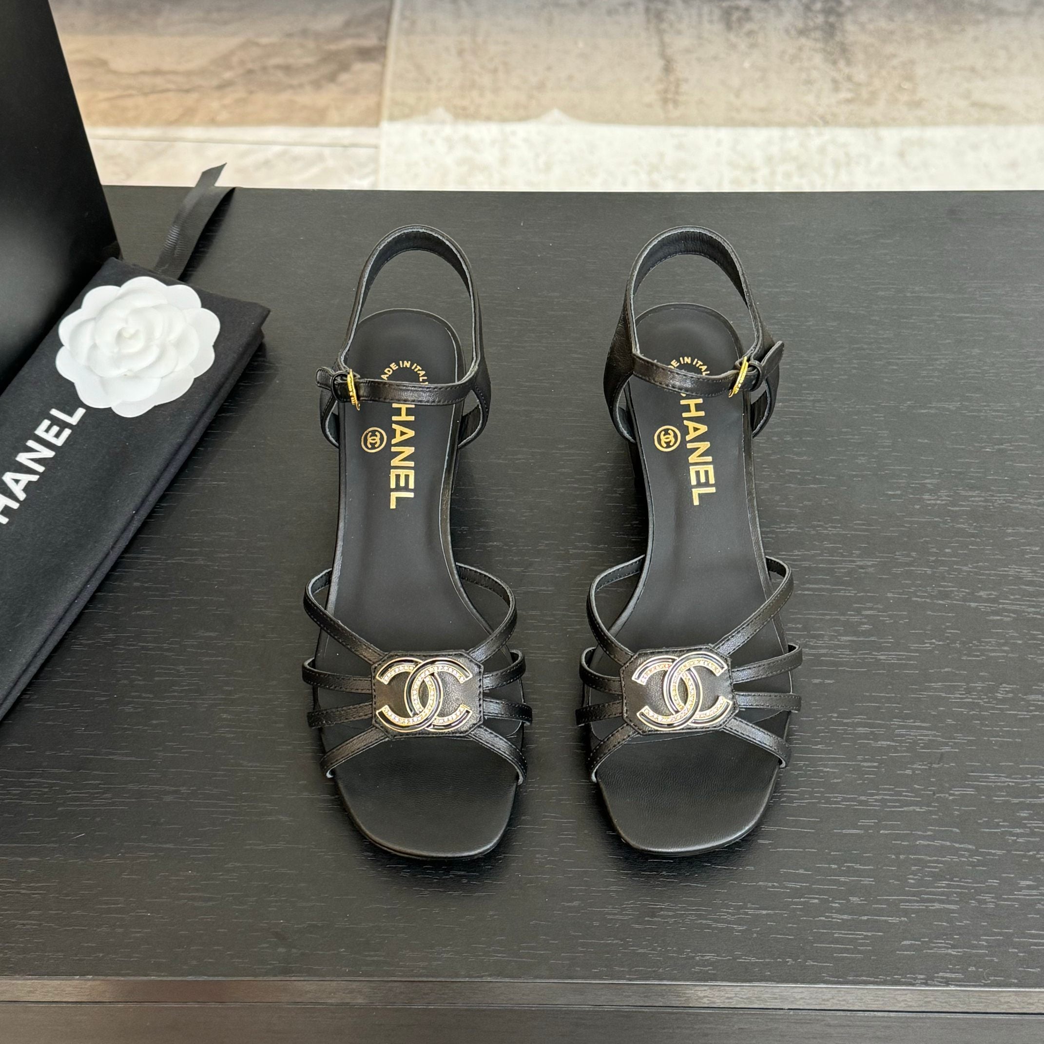 CC 85mm Sandal Black Sheepskin 212929