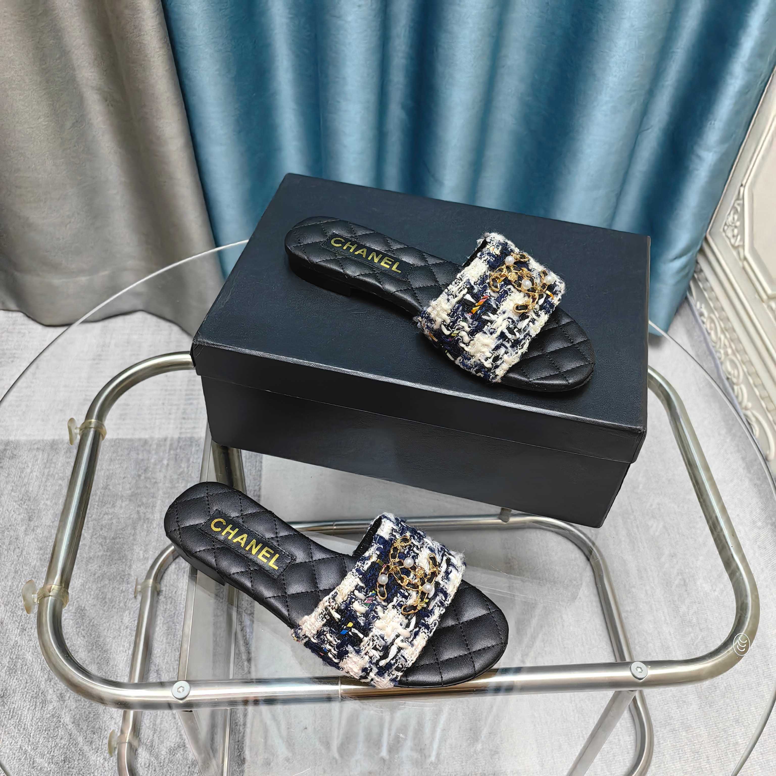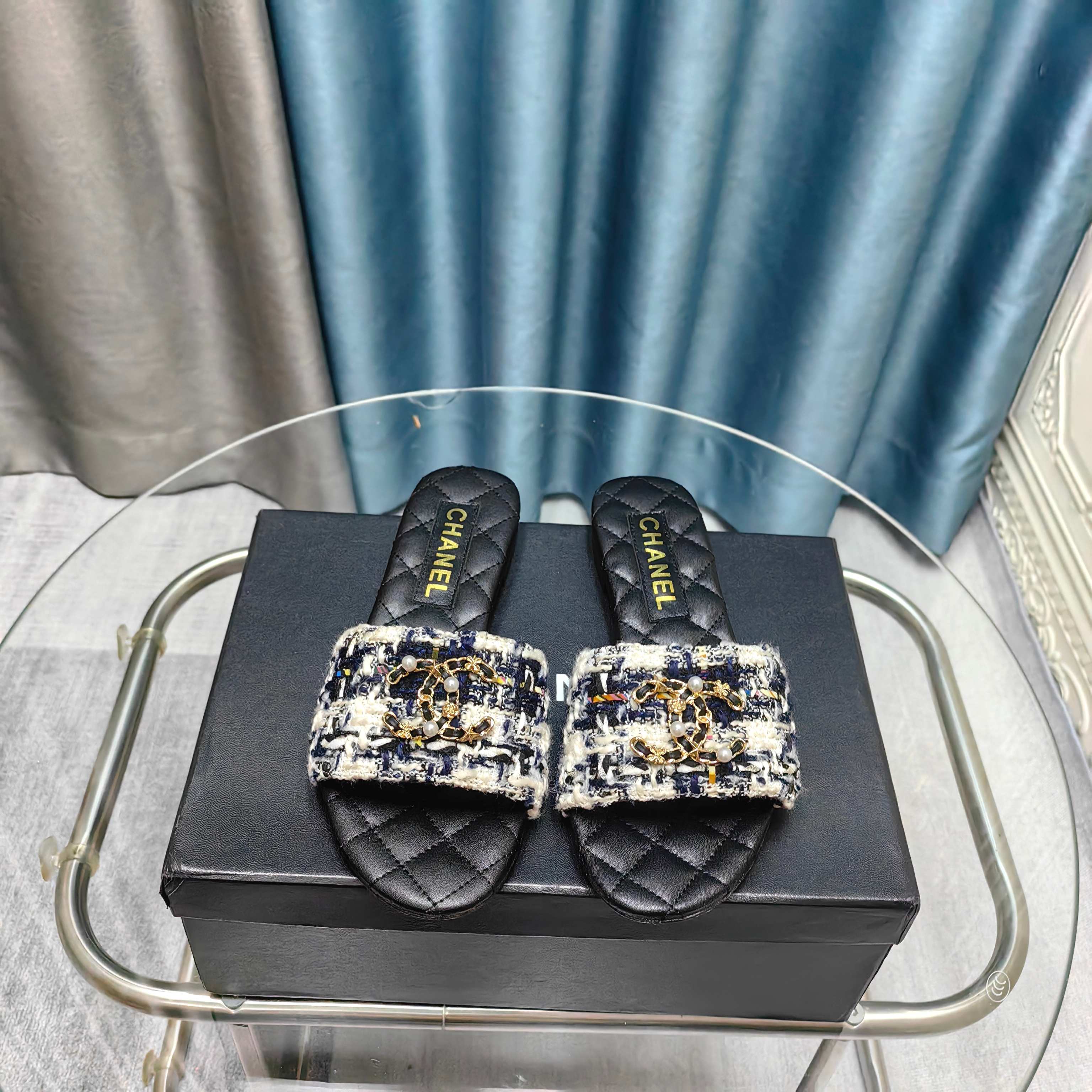 CC 25P Ballet Flat Dark Blue Tweed Black Calfskin