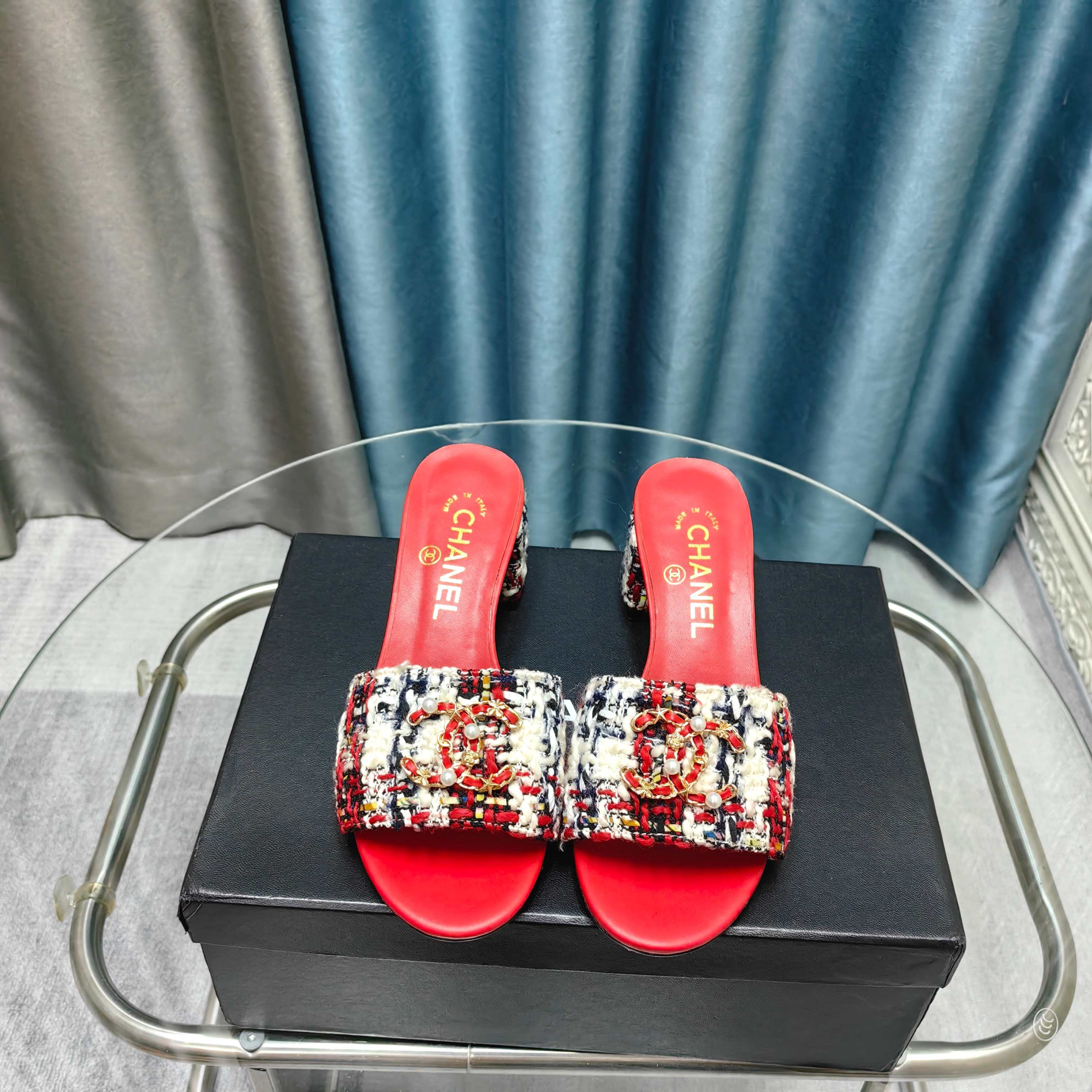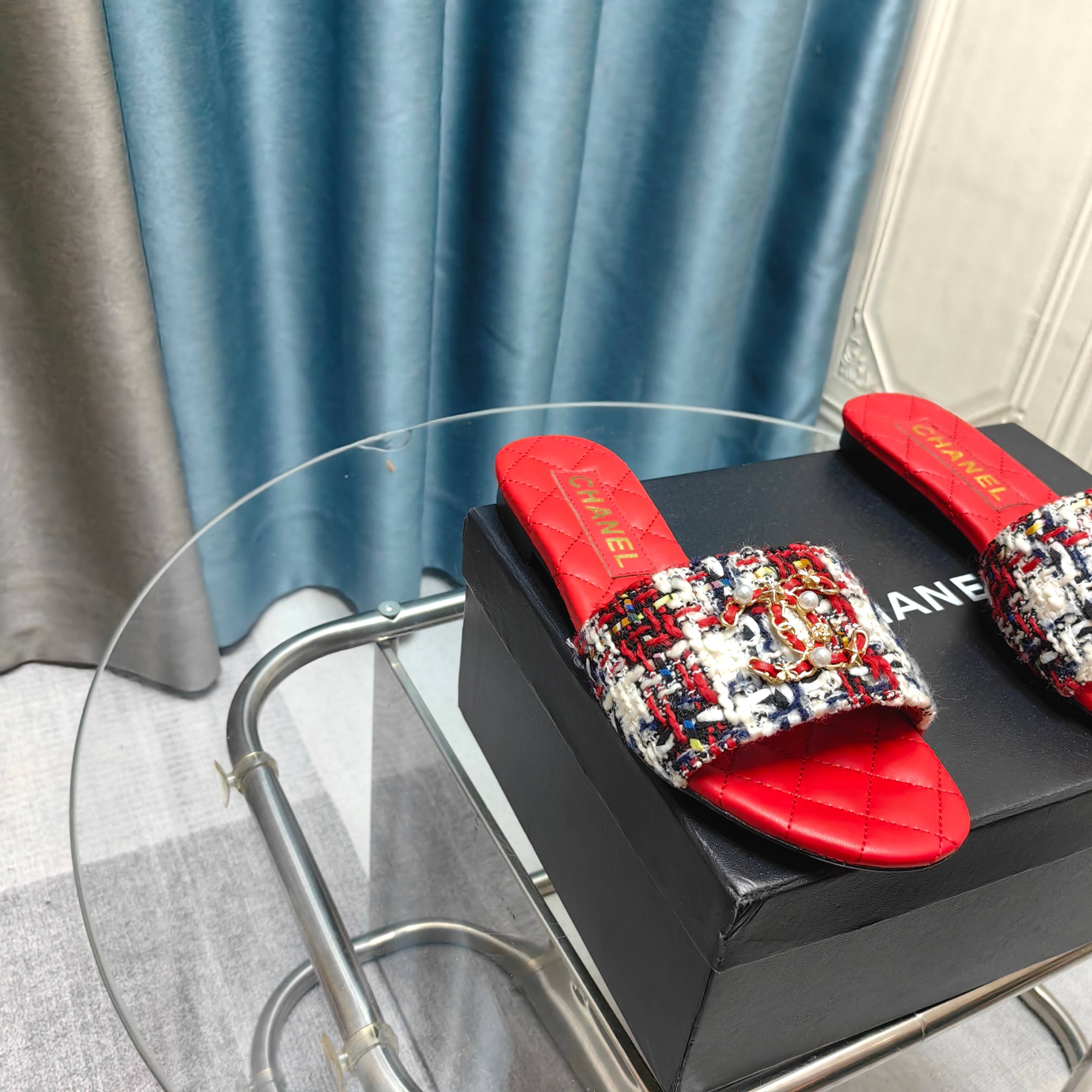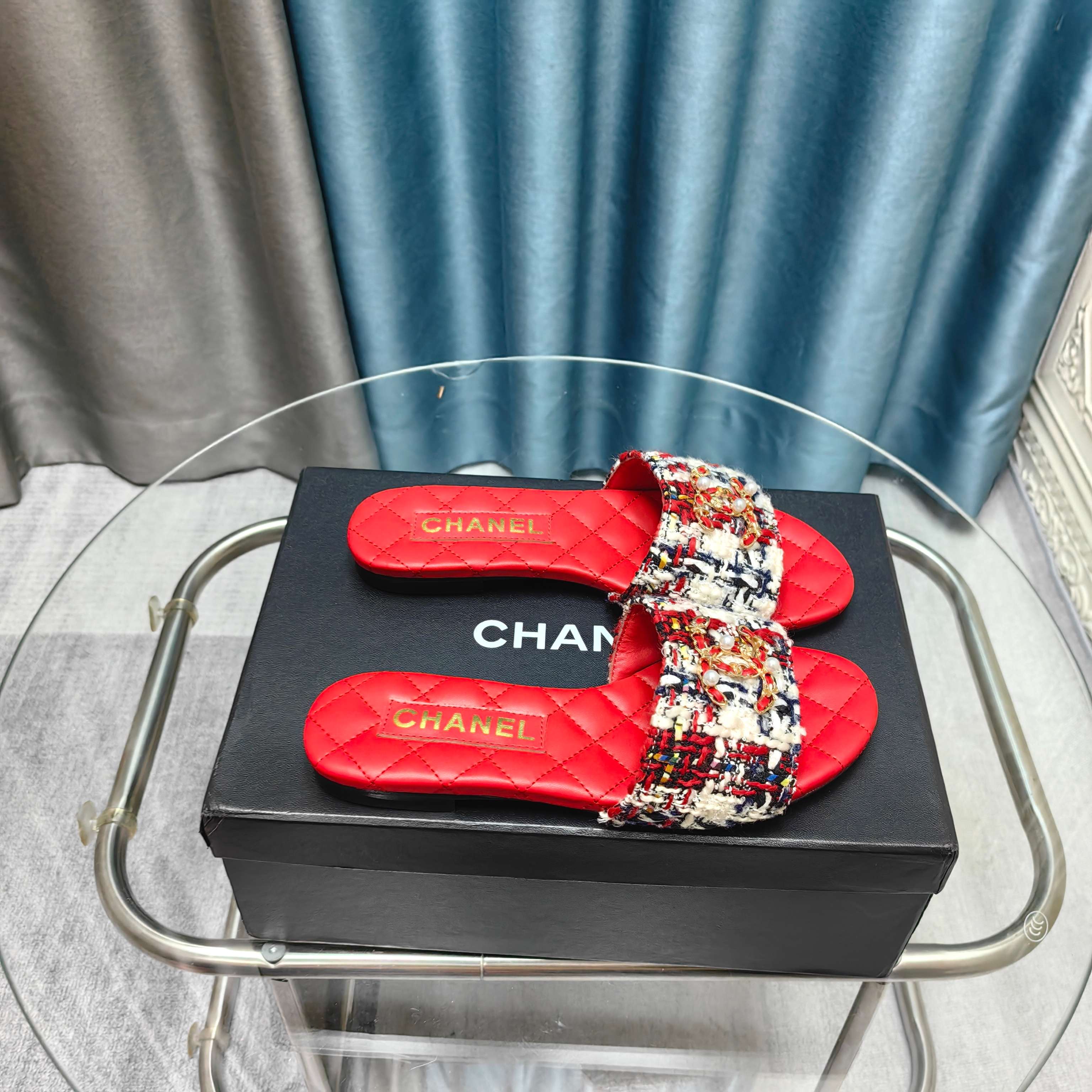 CC 25P Ballet Flat Red Tweed Black Calfskin