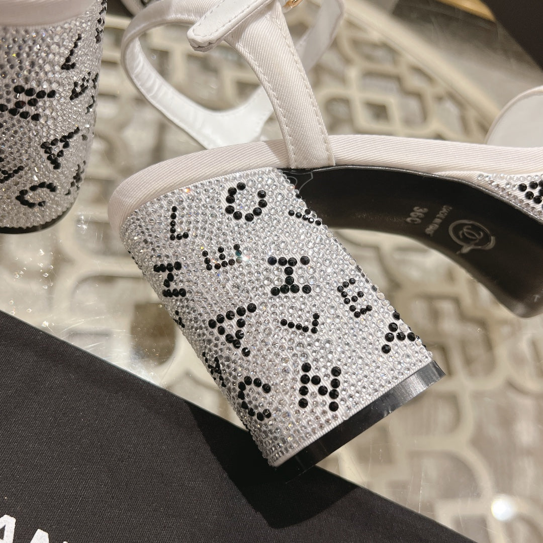 CC 25C 10CM Mid Heed Sandals White Fabric 213325