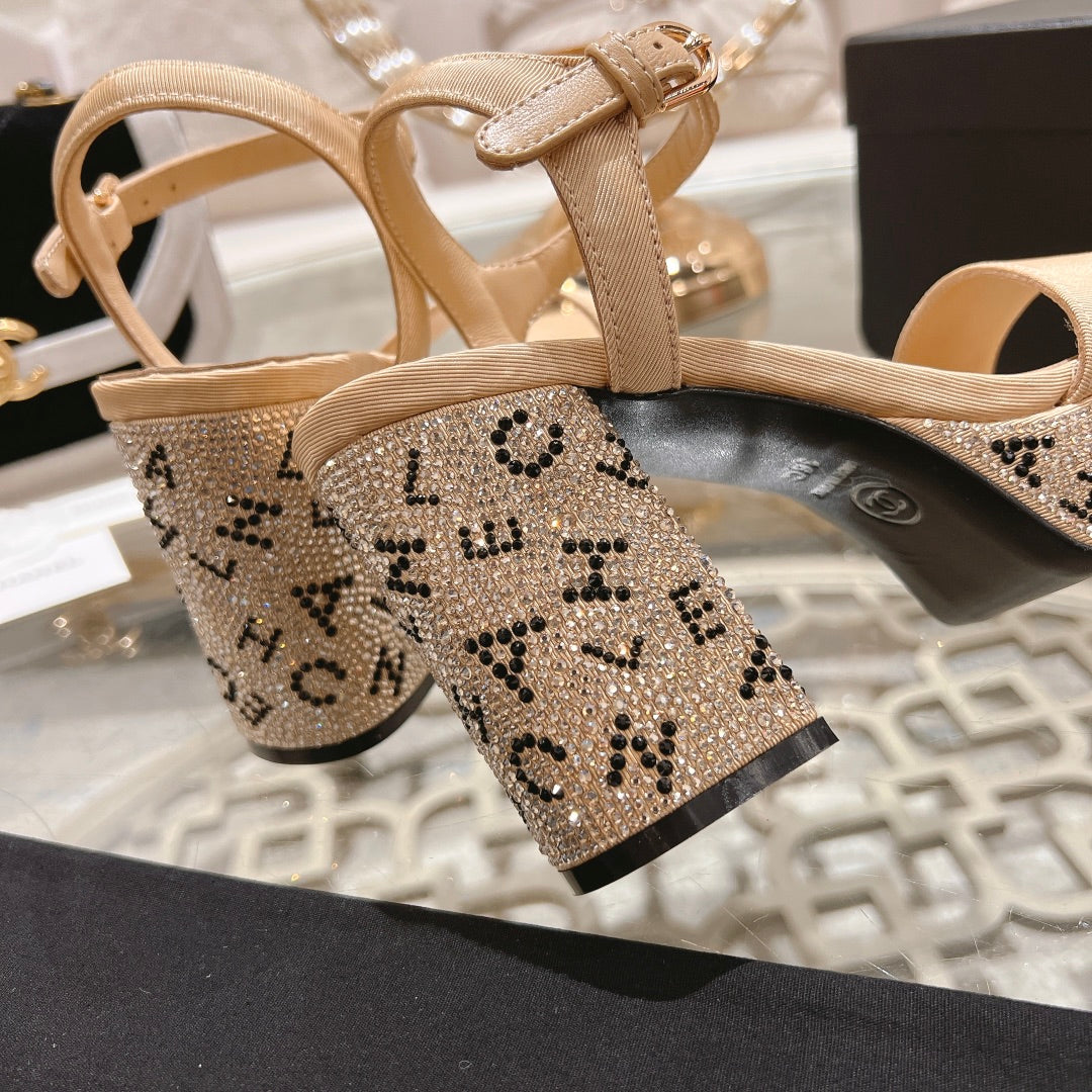 CC 25C 10CM Mid Heed Sandals Black Fabric 213324