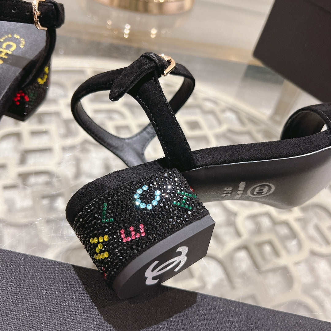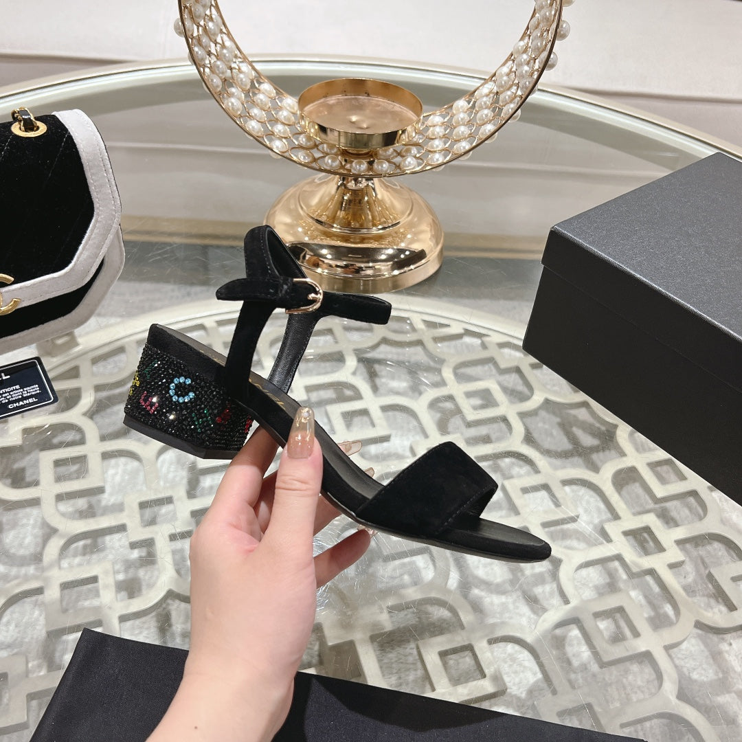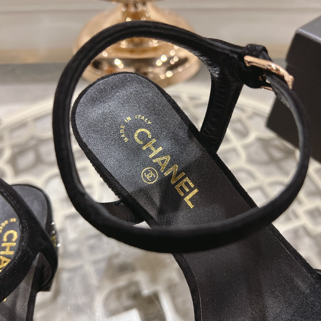 CC 25C 10CM Mid Heed Sandals Black Suede 213328