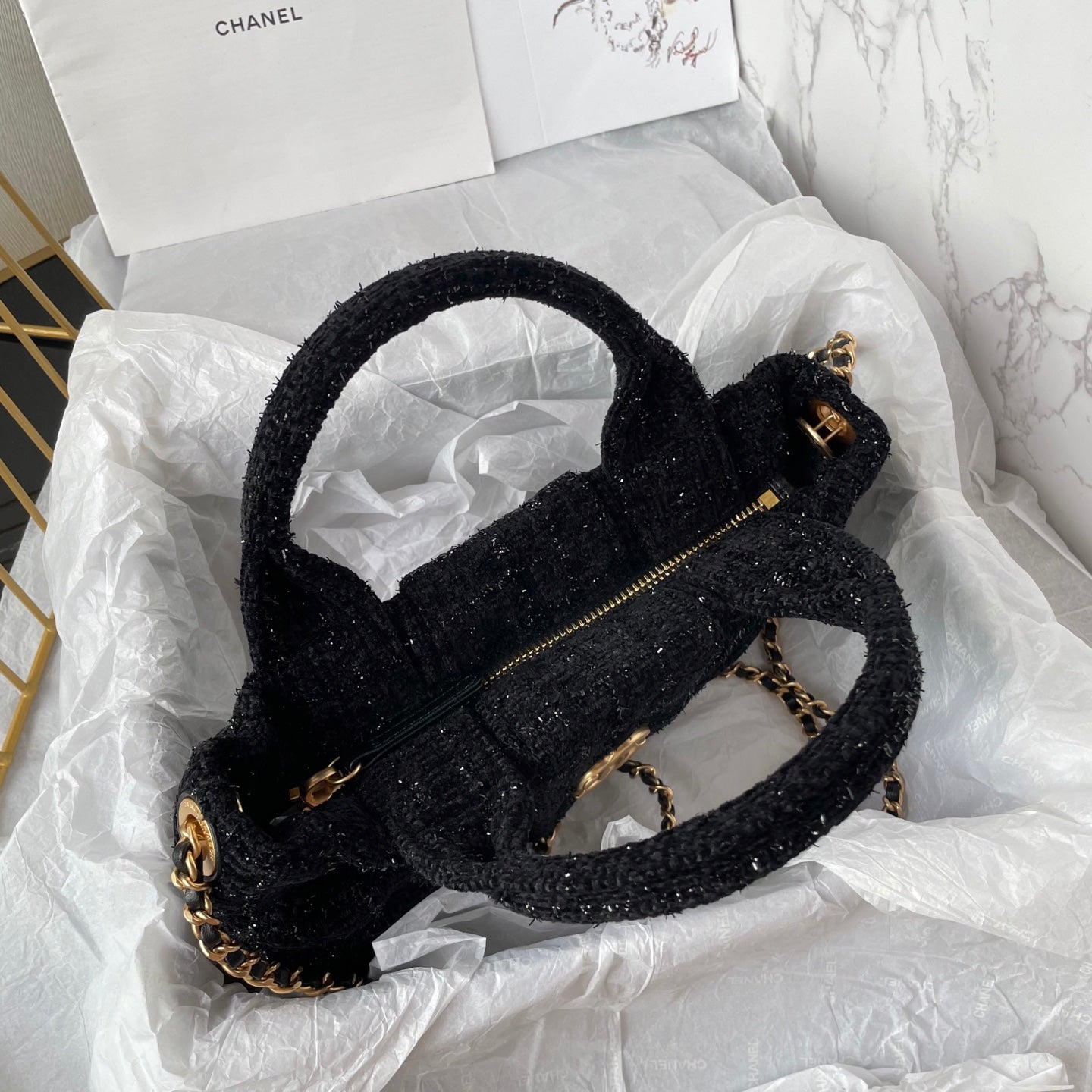 CC Deauville Tweed Bag Black Leather Gold Hardware 25