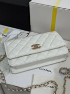 CC 25P Wallet On Chain 19cm White Cowhide Heart Rhinestone 243592