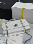 CC 25P Wallet Woc Handle 19cm White Leather Silver Hardware 243451