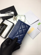 CC CARD HOLDER 11.2 NAVY CALFSKIN SILVER ICON