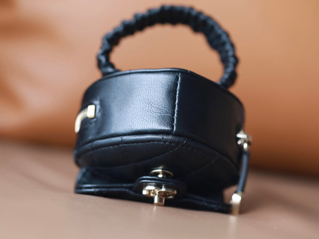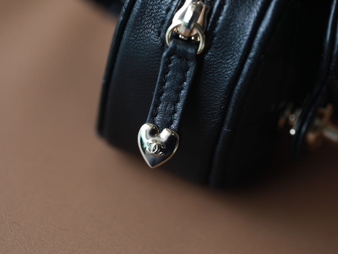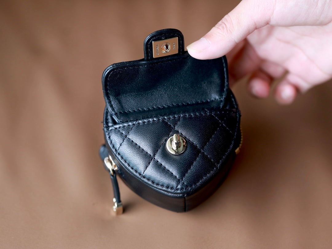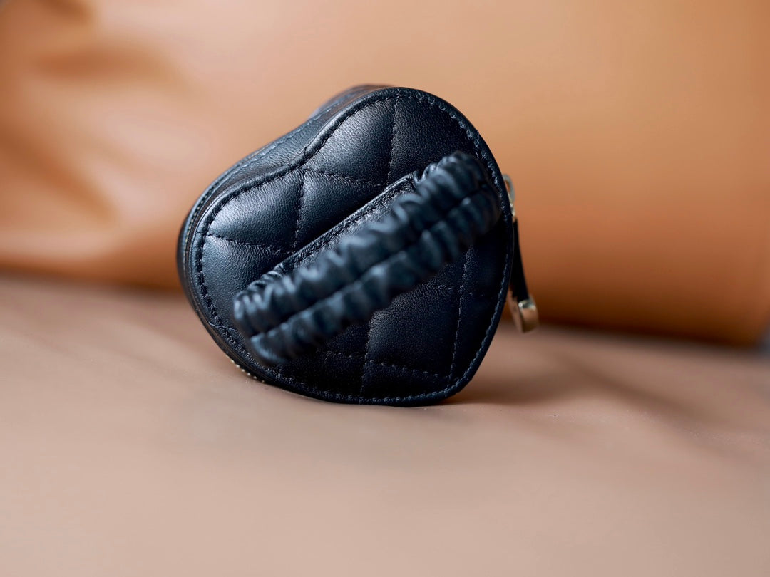 CC HEART COIN PURSE 8.5 BLACK CALFSKIN