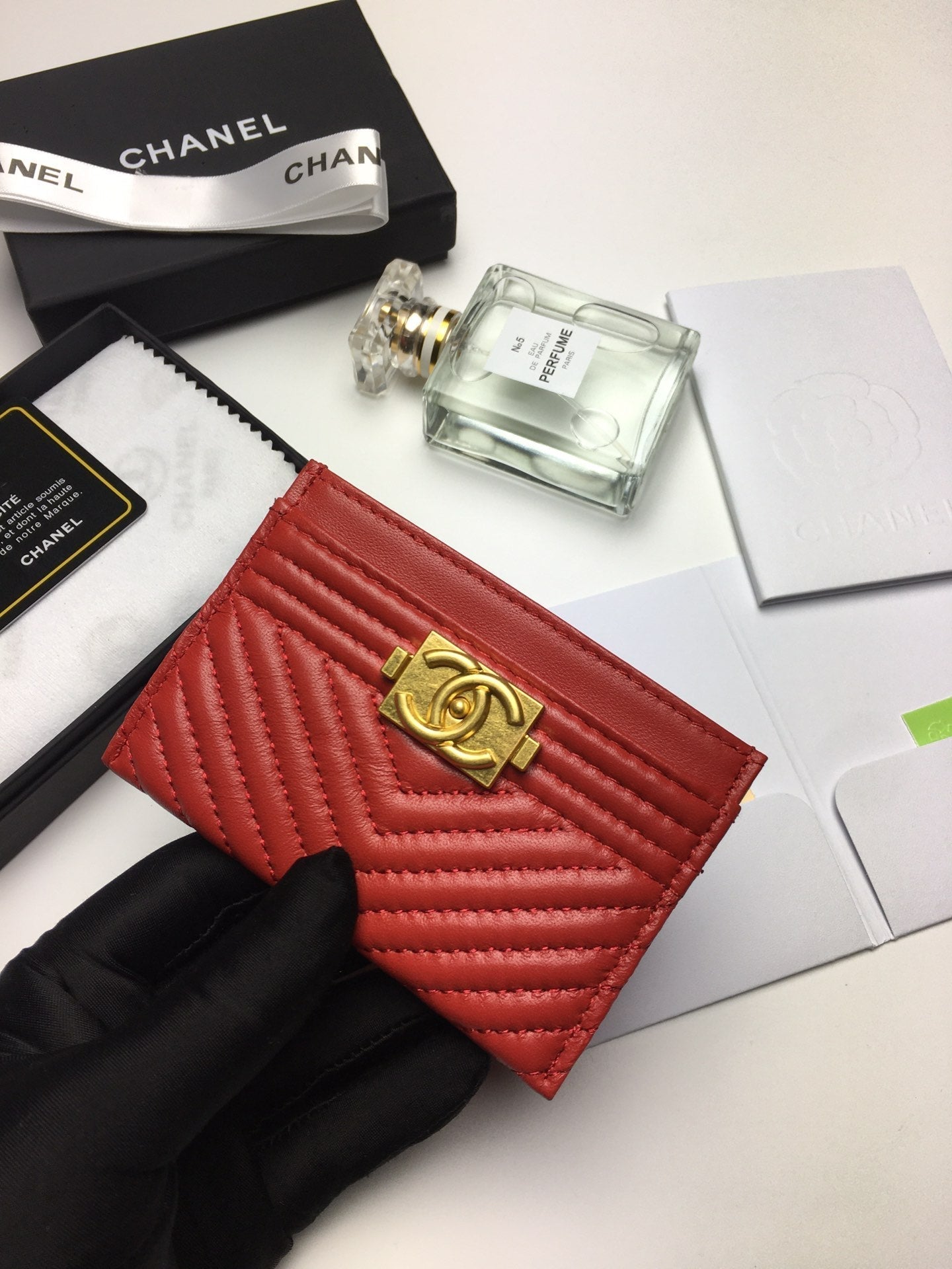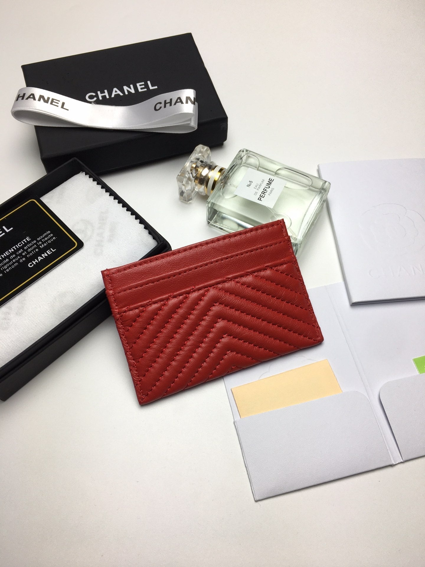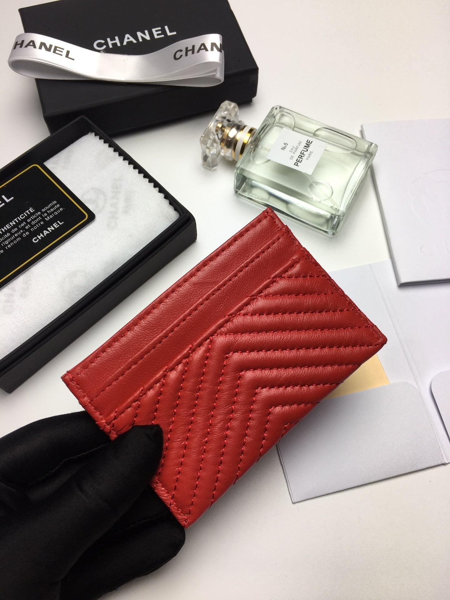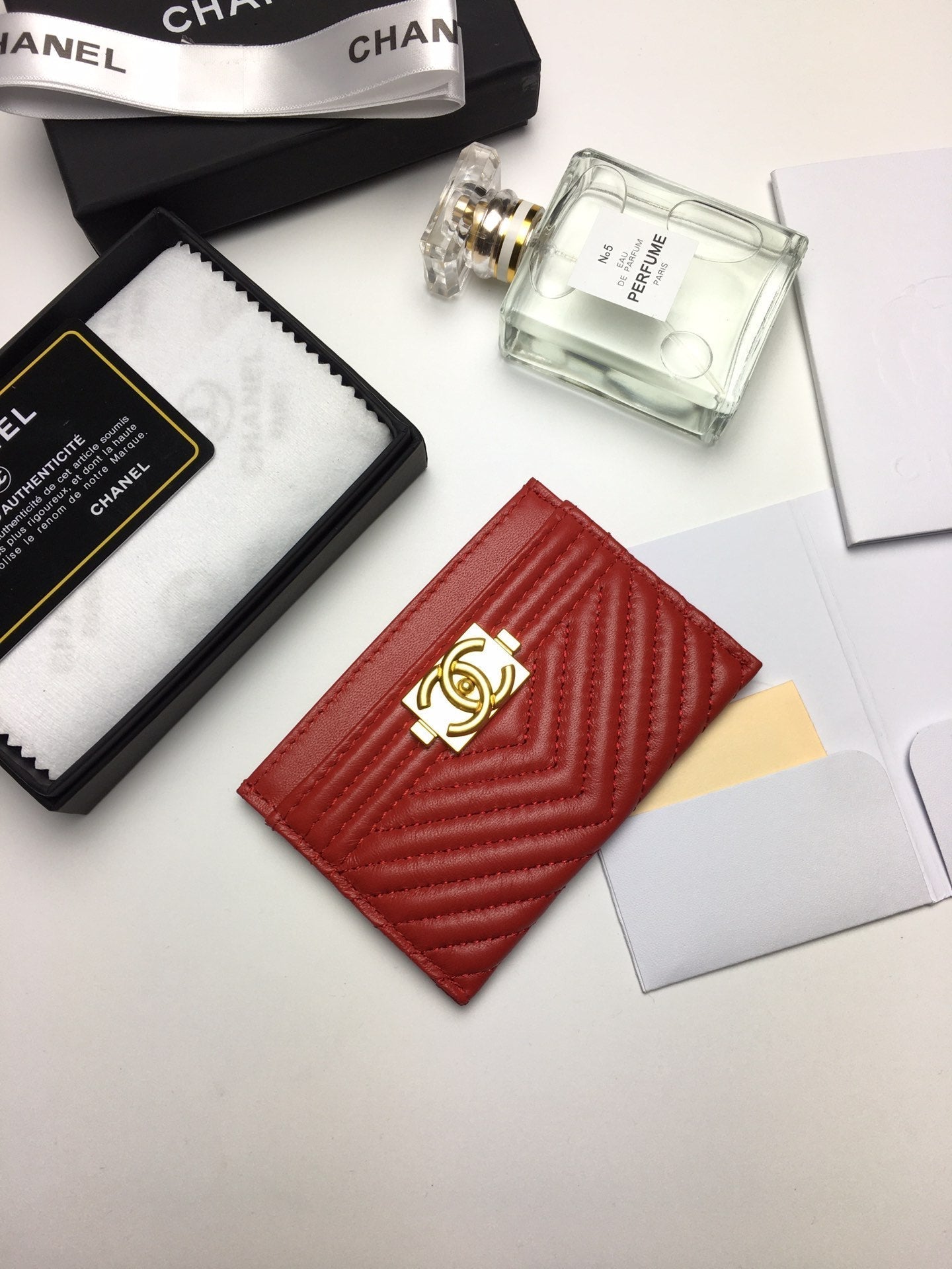 CC LINE CARD HOLDER 11.2 RED CALFSKIN GOLD ICON