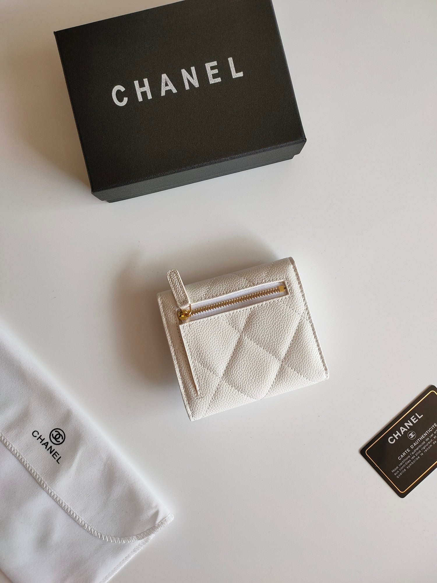 CC SQUARE PURSE 12 WHITE GRAINED CALFSKIN GOLD ICON