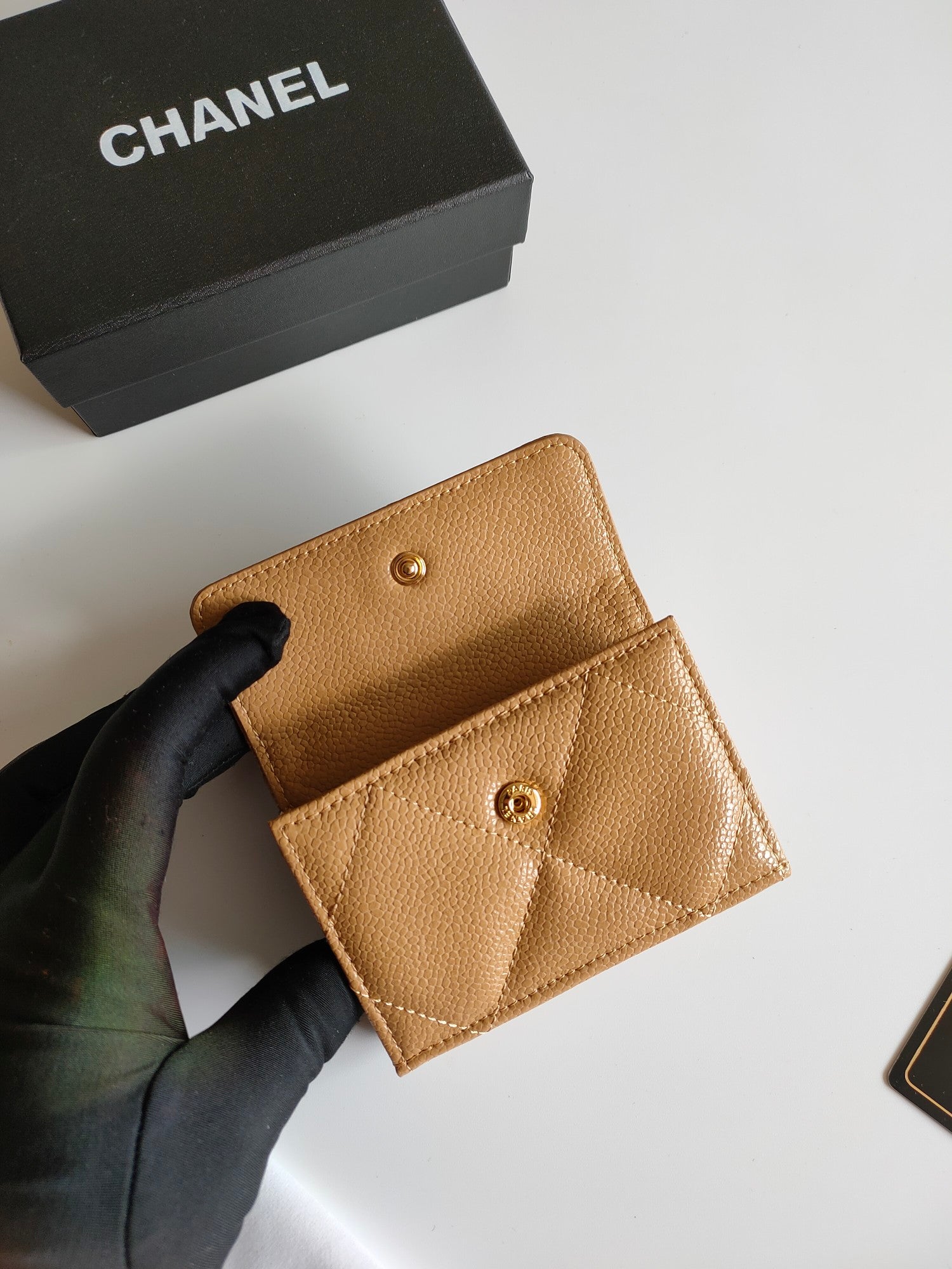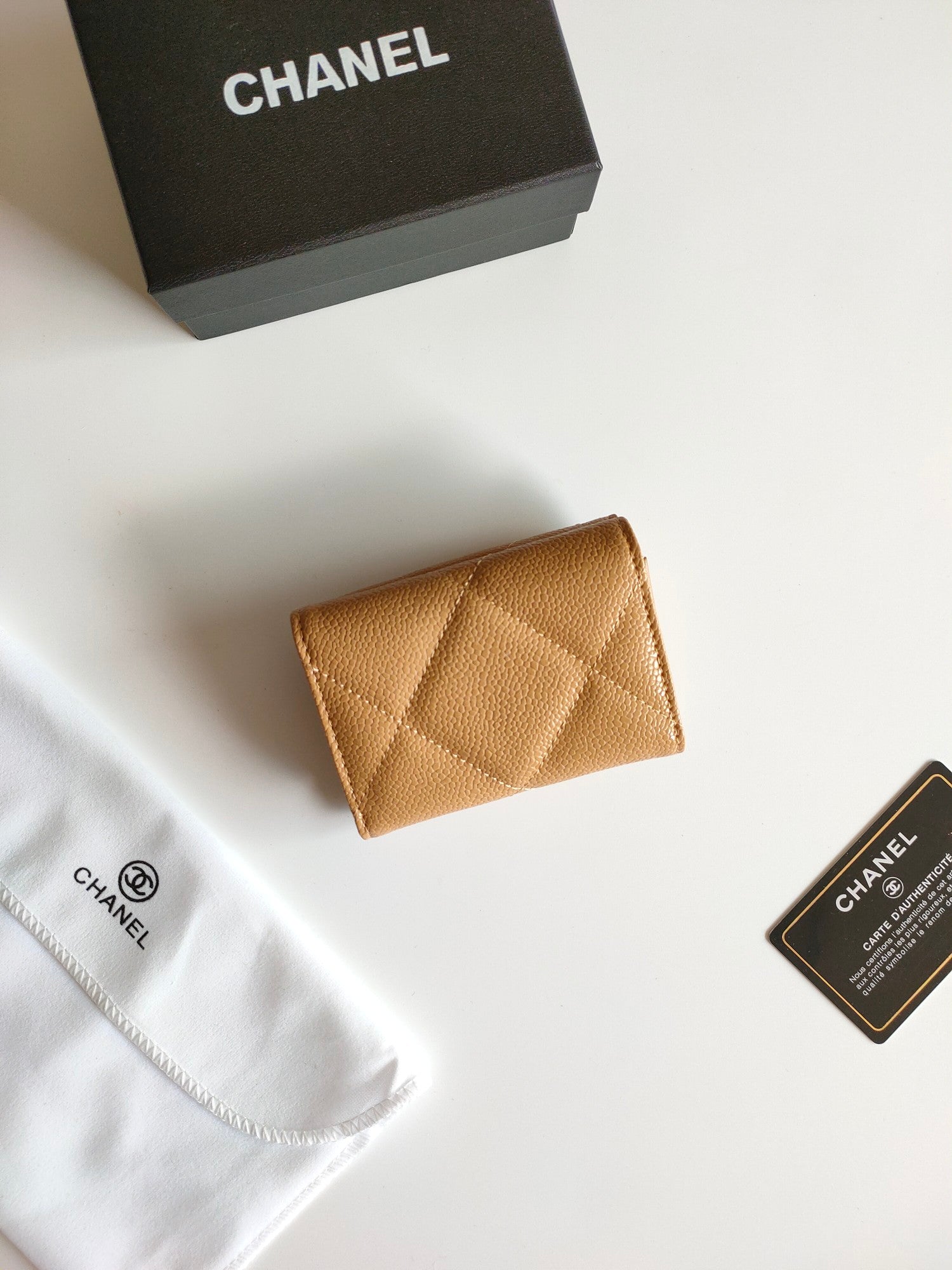 CC TRIFOLD PURSE 12 AMBER GRAINED CALFSKIN GOLD ICON
