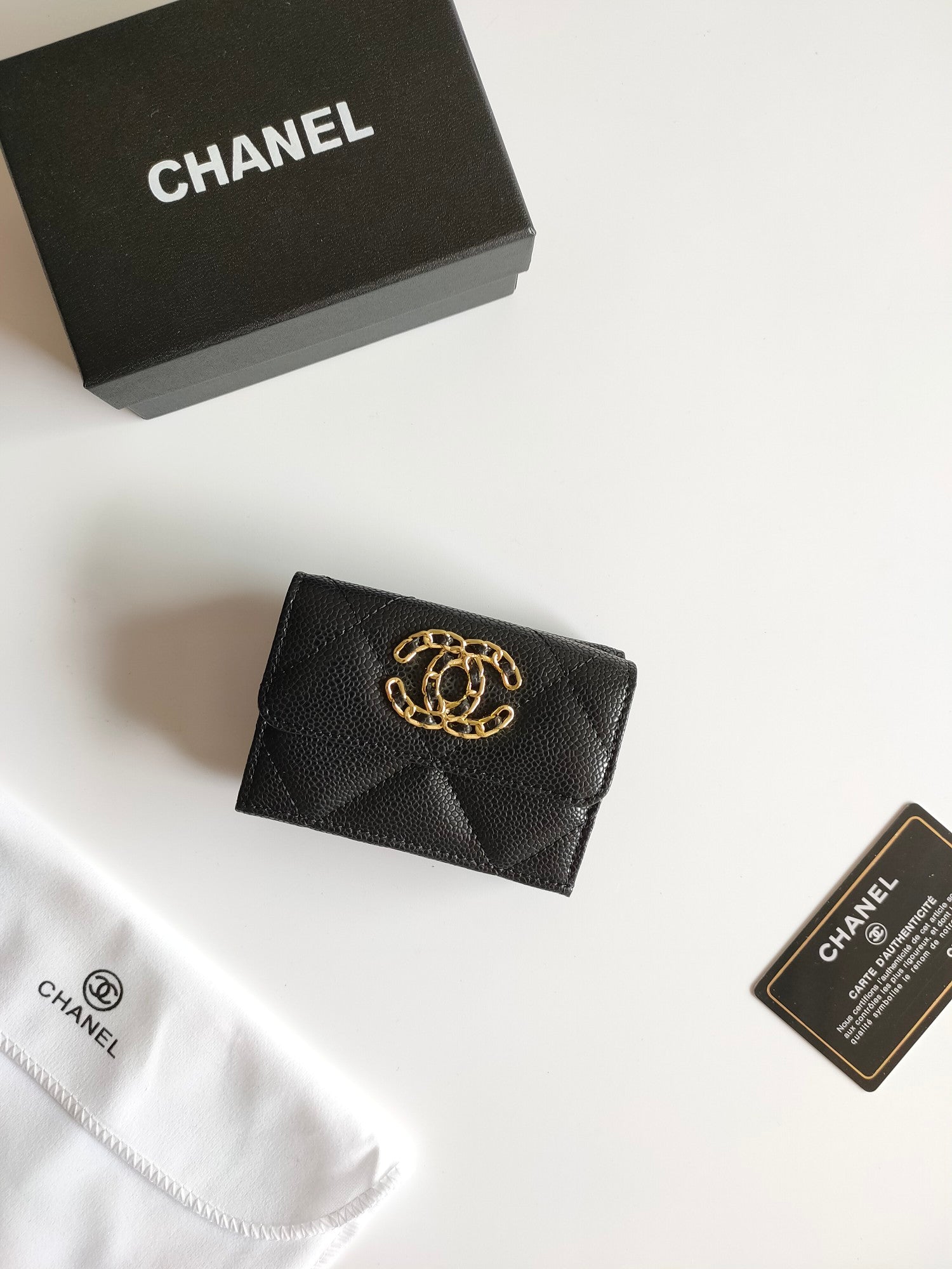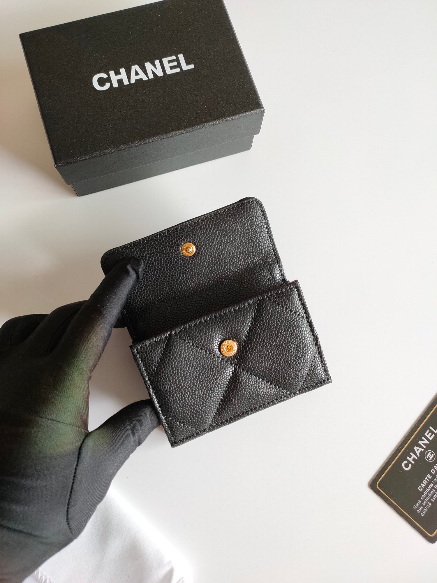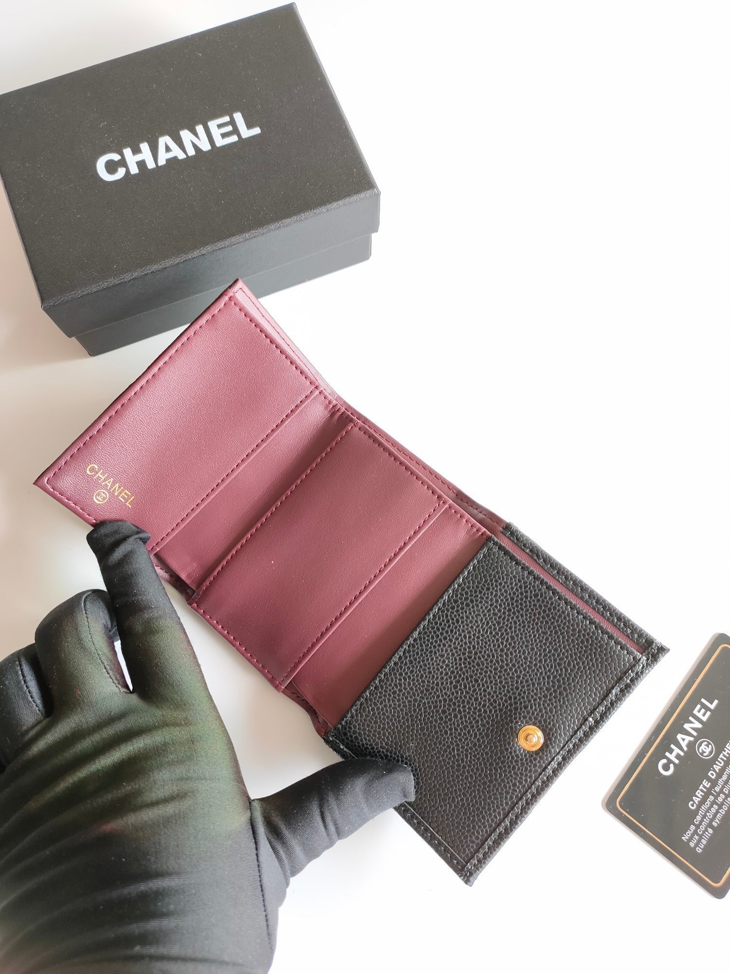 CC TRIFOLD PURSE 12 BLACK GRAINED CALFSKIN GOLD ICON