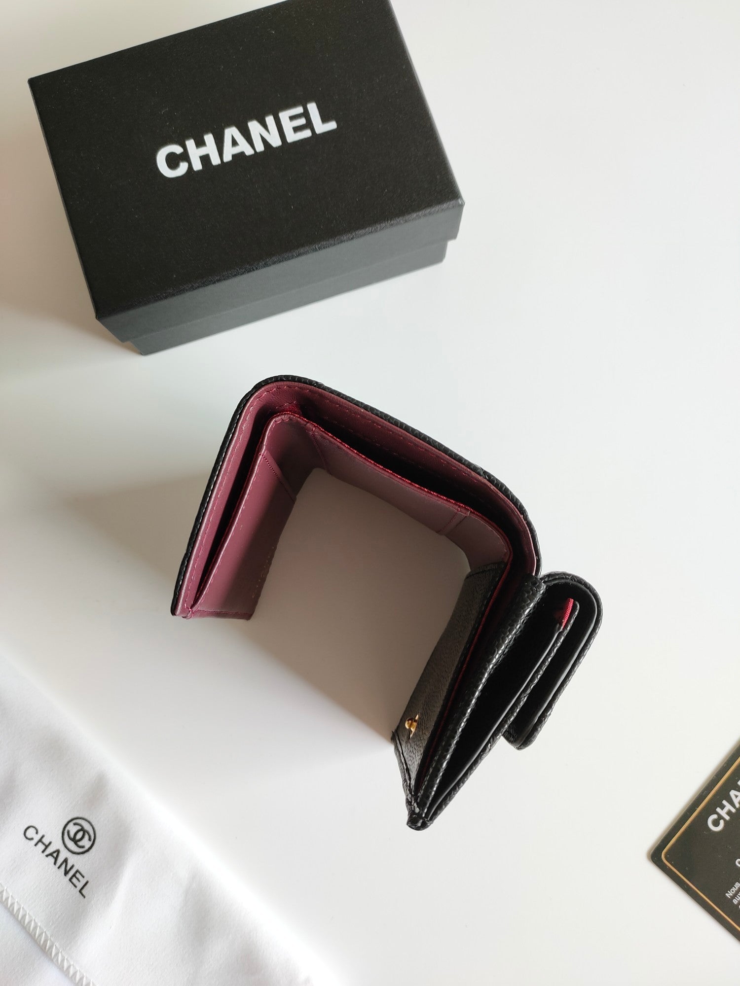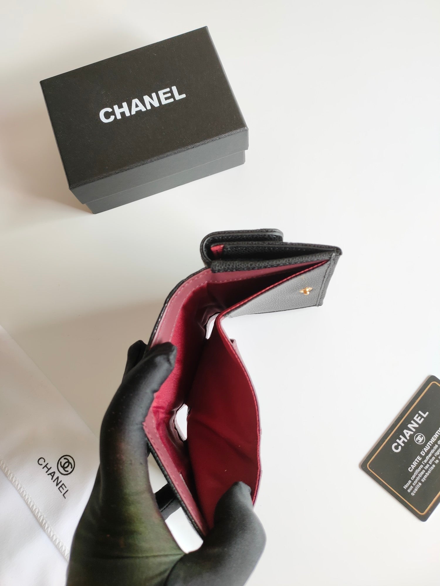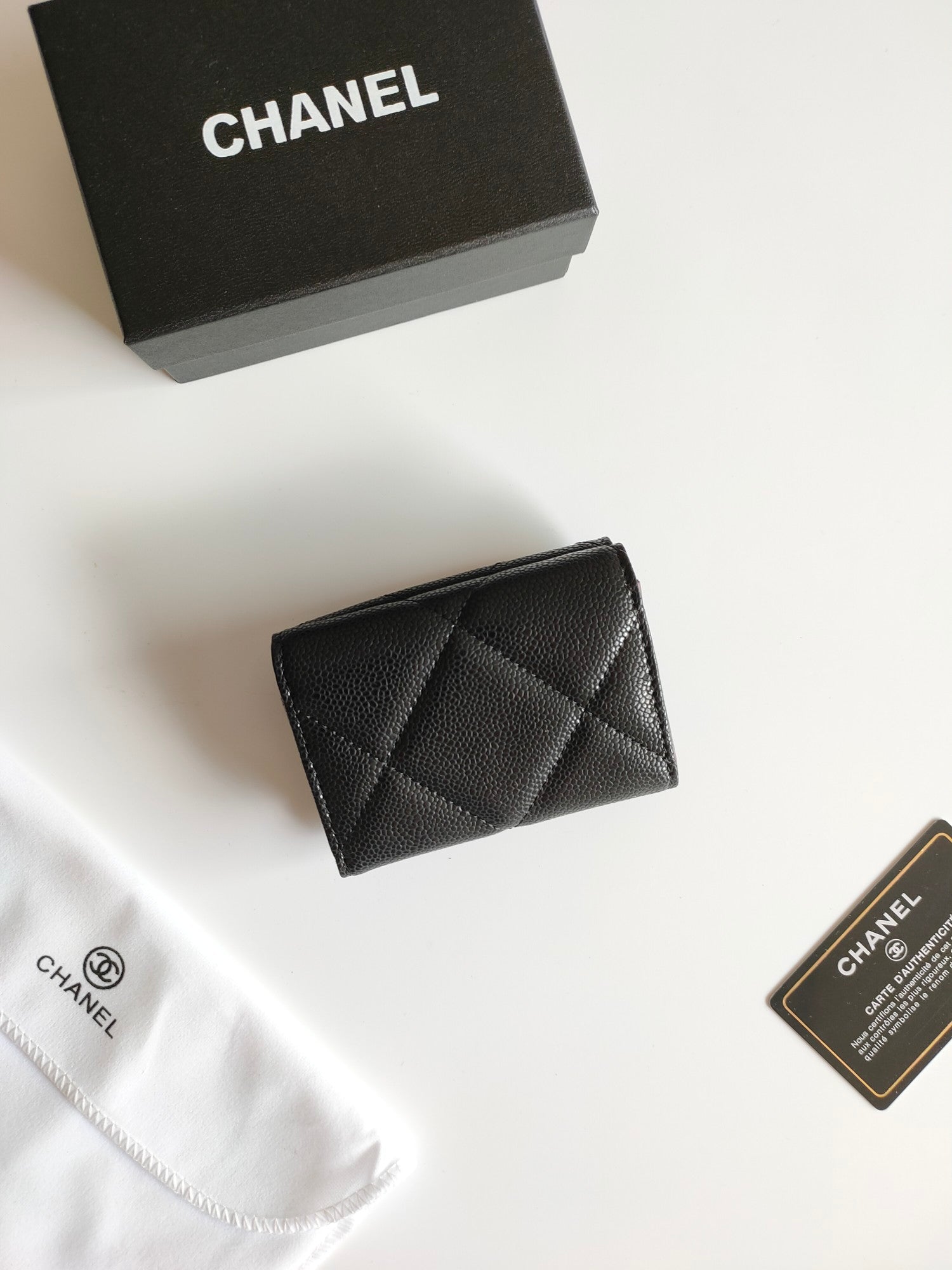 CC TRIFOLD PURSE 12 BLACK GRAINED CALFSKIN GOLD ICON