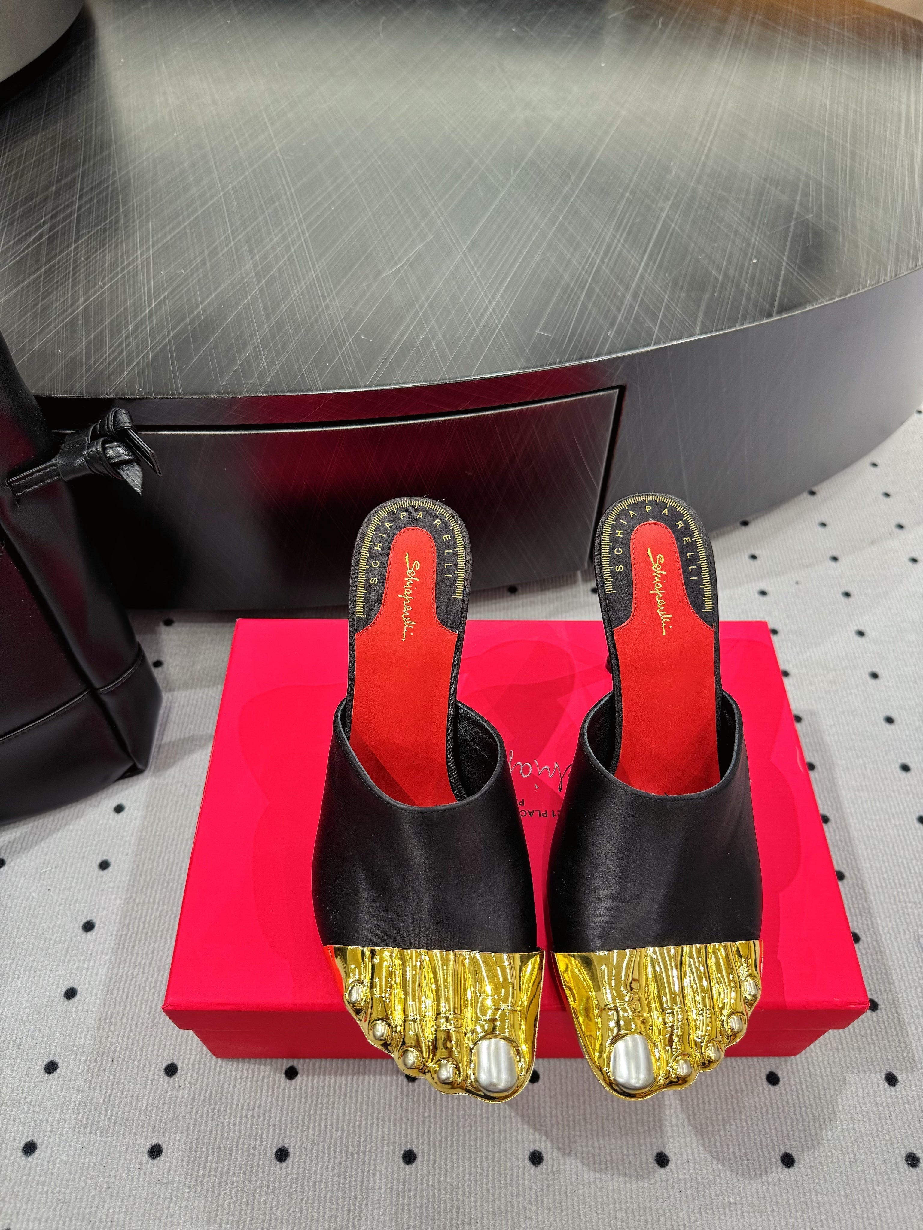 CL 25 Elsa Schiapar Mules Black Gold Silk 321607
