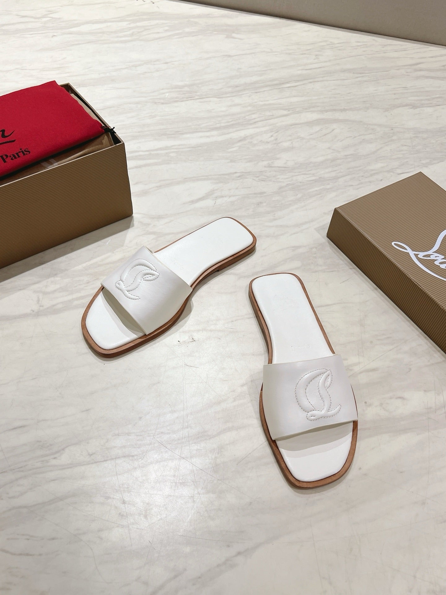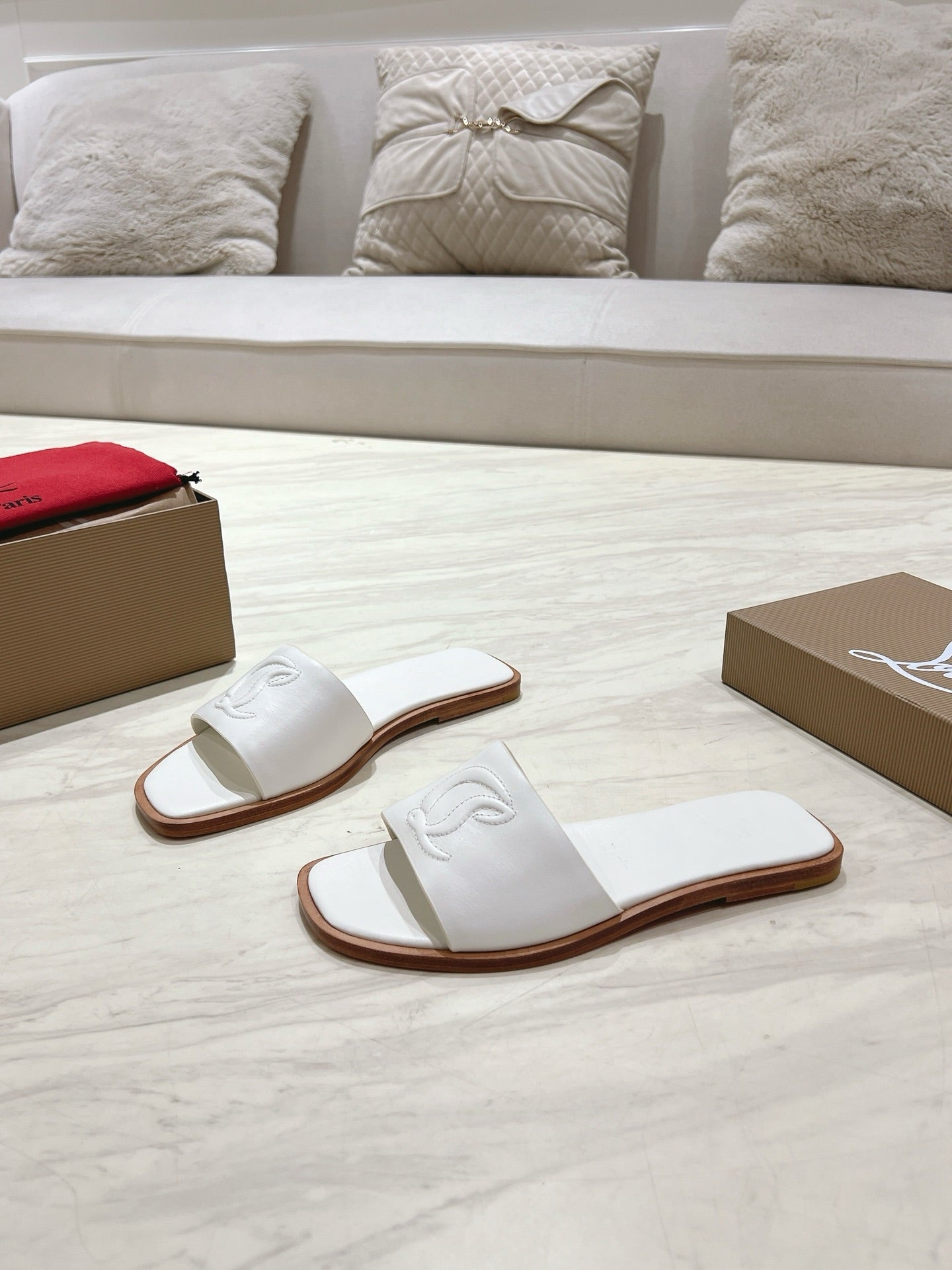 CL 25 Slippers White Top Layer High Gloss Calfskin 307497