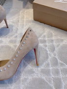 CL Irishell 85 Studded d'Orsay Pumps Cream Suede 177131