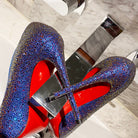 CL Kate Strass Degrade Pumps 100mm Suede Blue