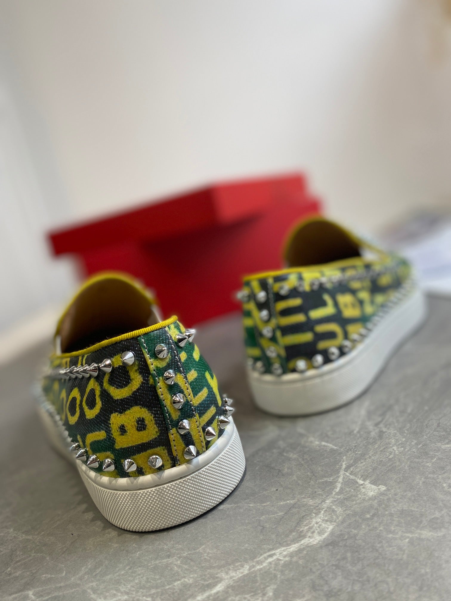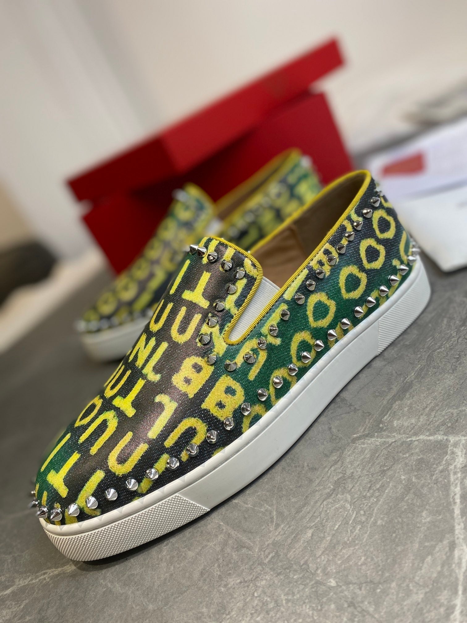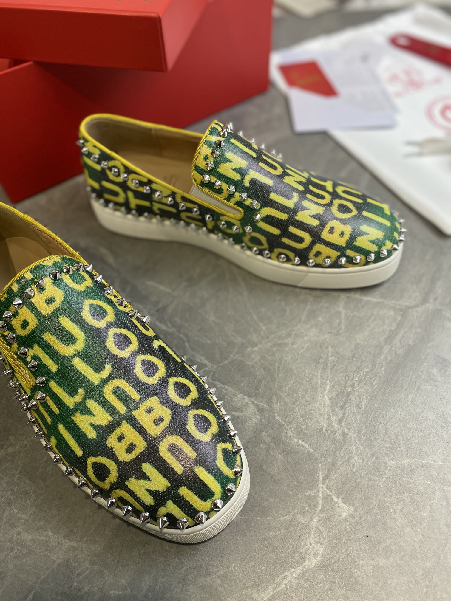 CL Loafers Monogram Yellow Green Leather and Spikes 242380
