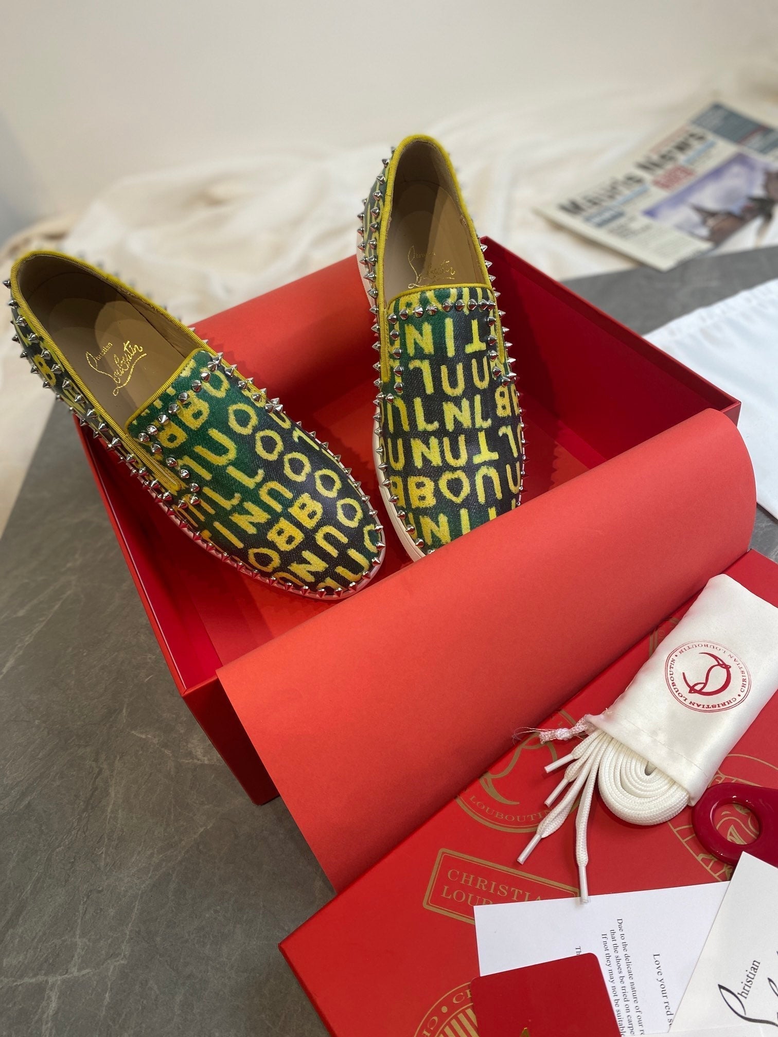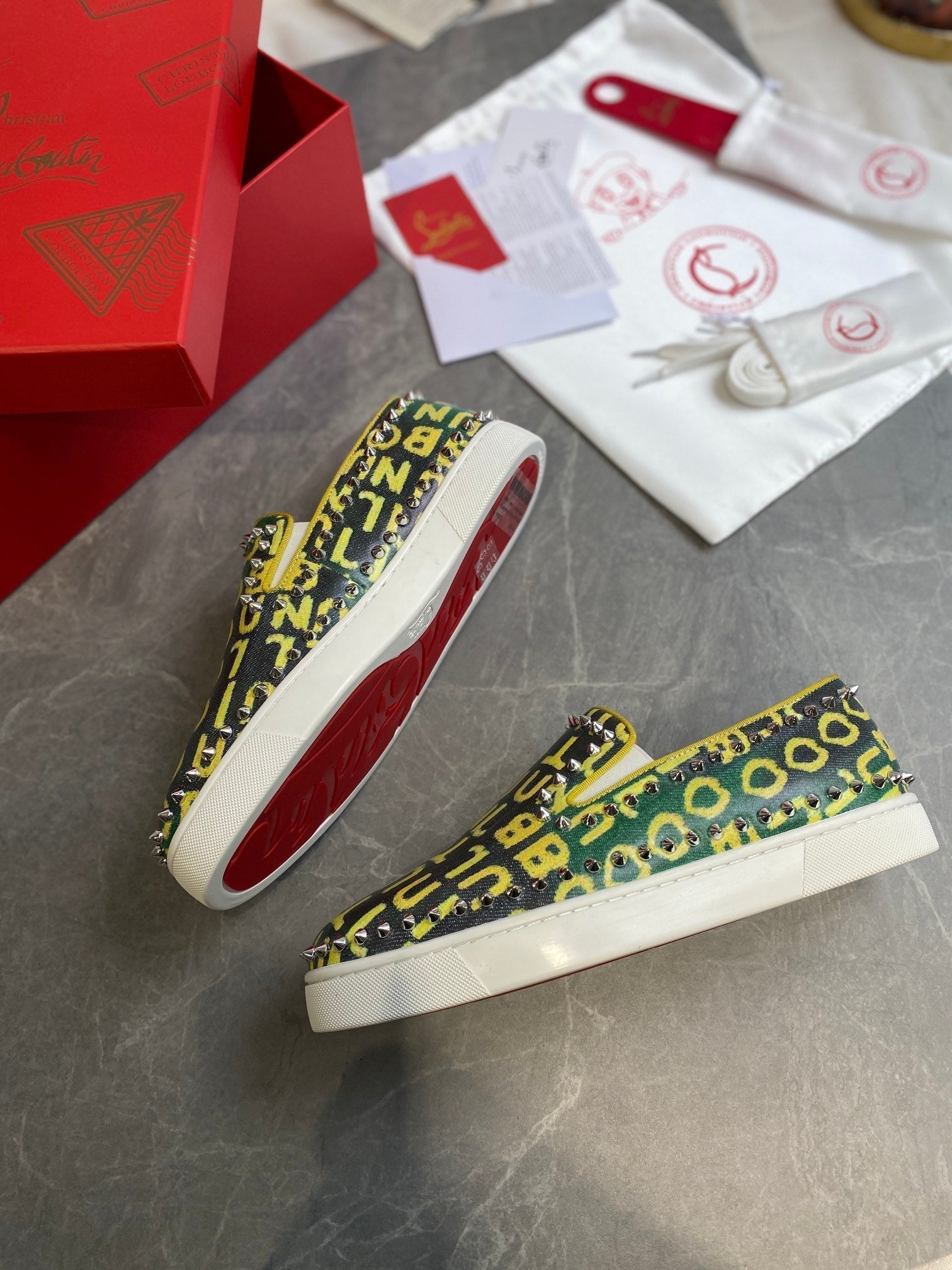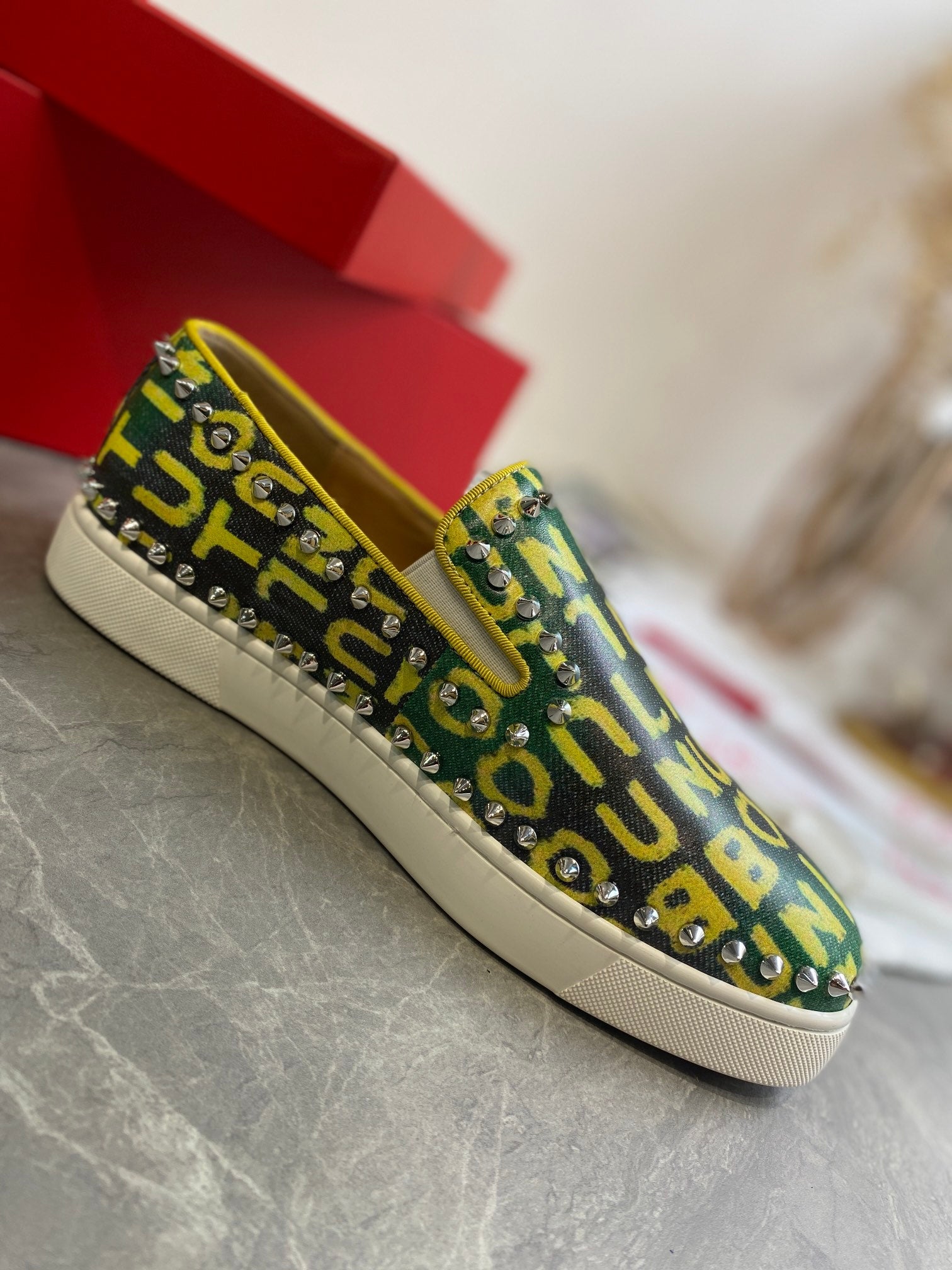 CL Loafers Monogram Yellow Green Leather and Spikes 242380