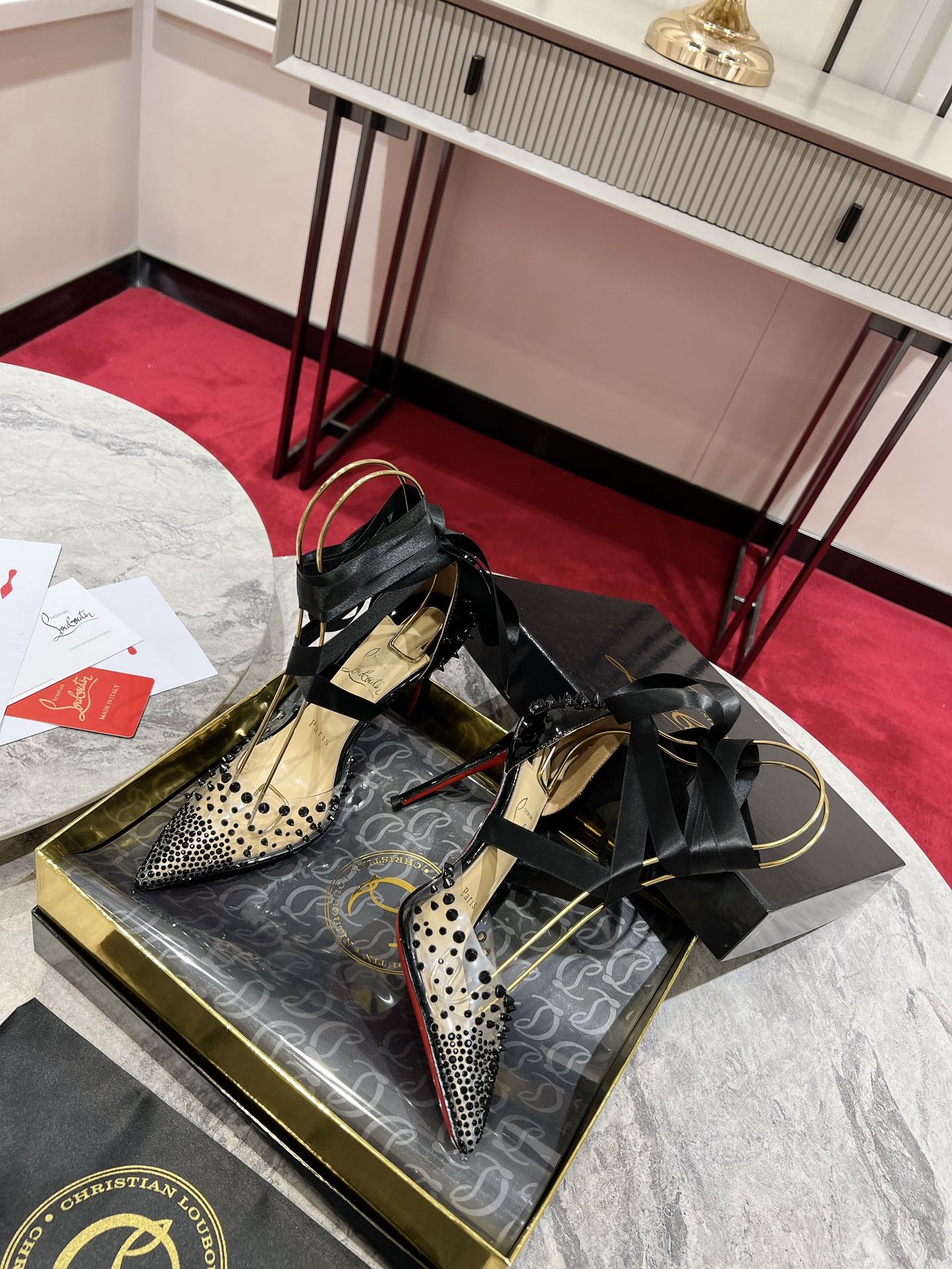 CL Mechante Reine Pumps 100mm Spike Patent PVC Black