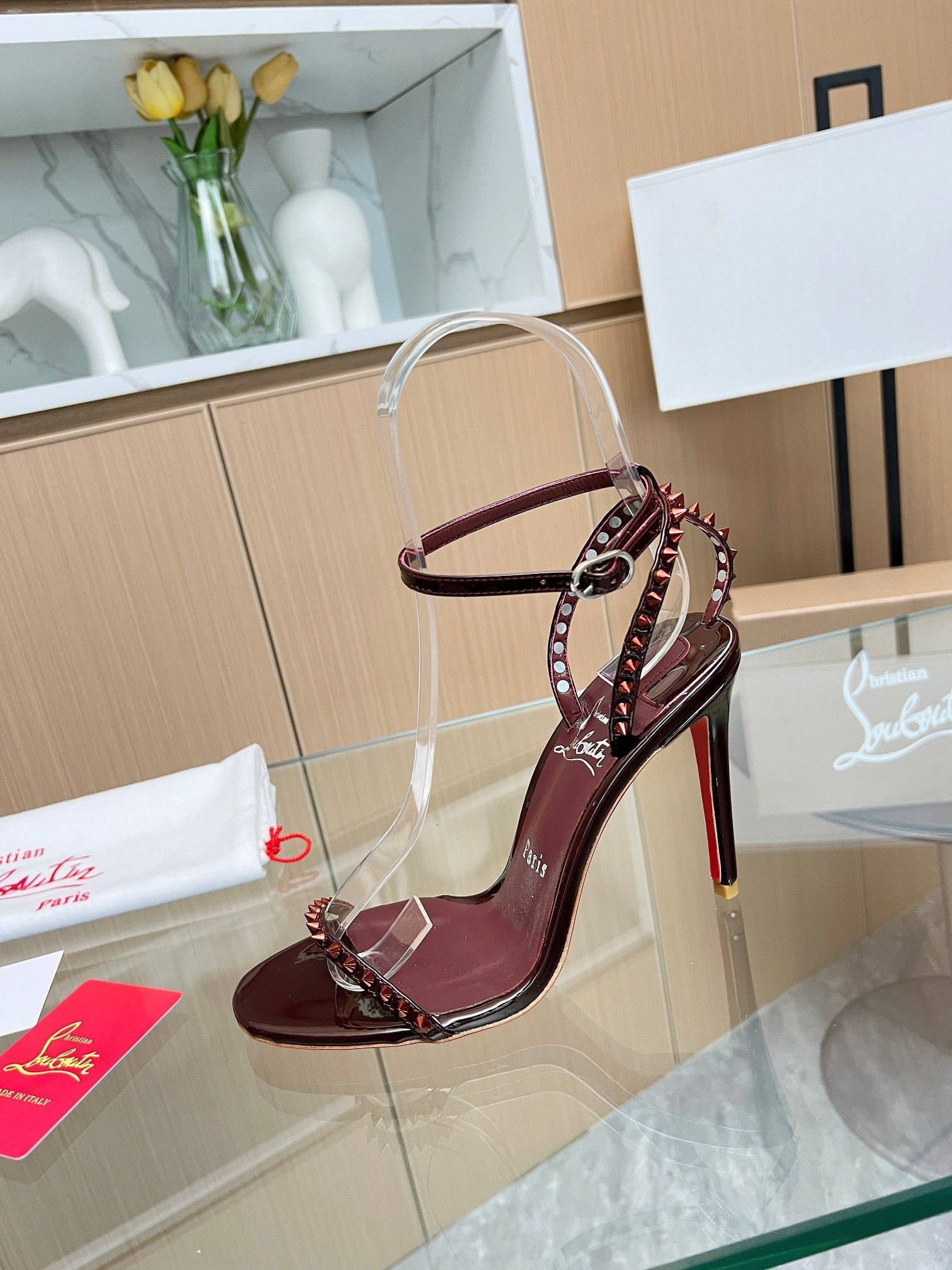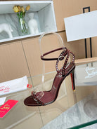 CL So Me 105 mm Strappy Sandal Dark Wine Red Imported Rivets with Sheepskin 251019