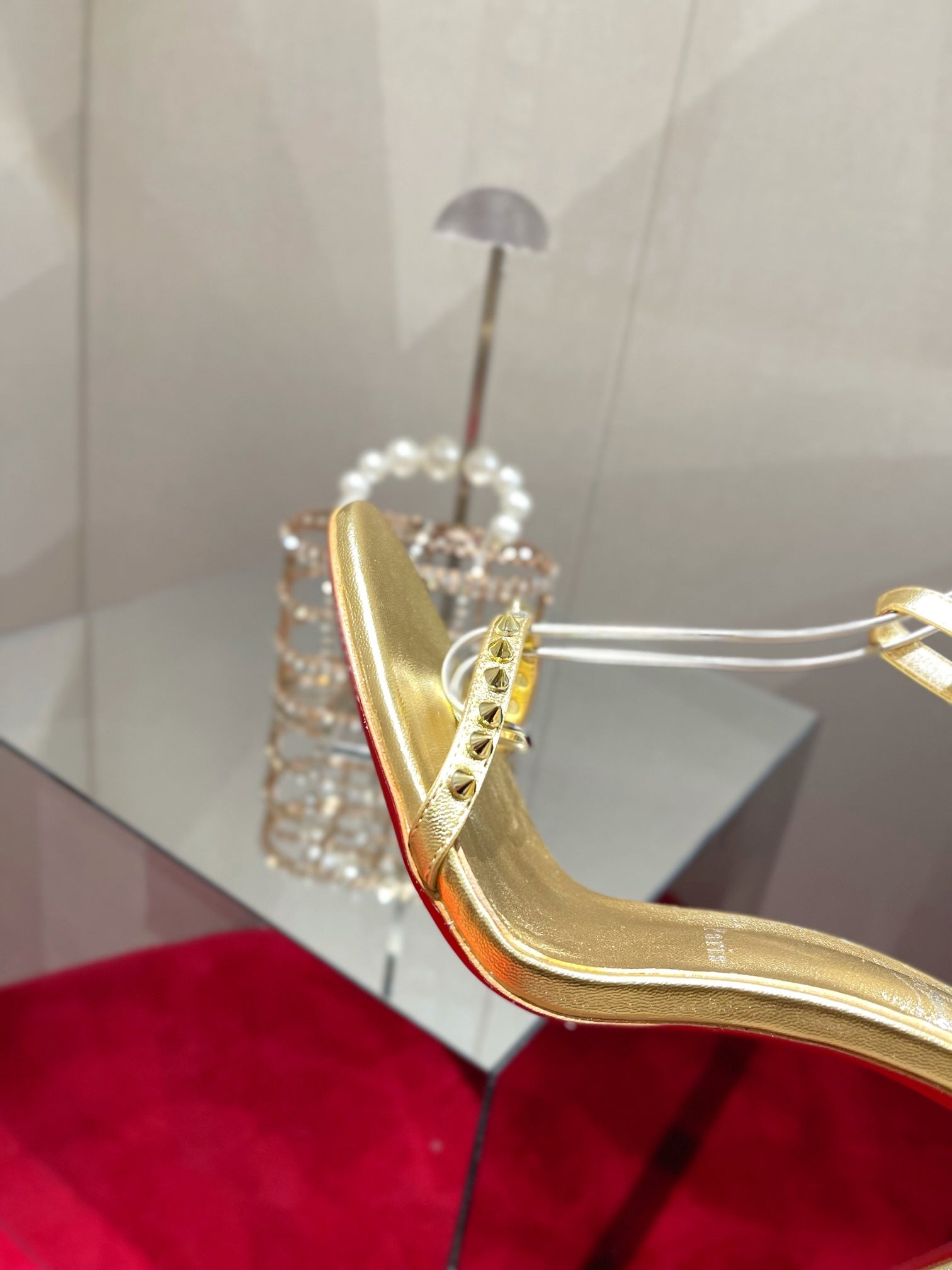 CL Spiked Strap Sandals 100mm Gold Leather 346013