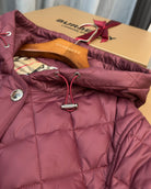 Burberry 25 Quilted Hooded Long Coat Burgundy Polyester Cotton