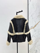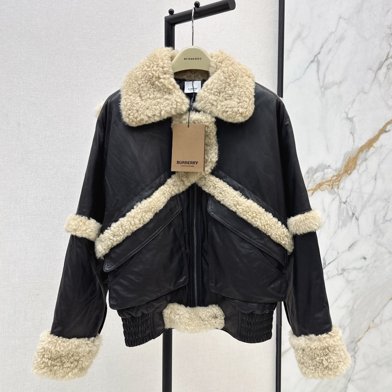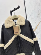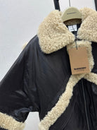 Burberry 25 Shearling-trimmed Bomber Jacket Black Cream Fur Leather