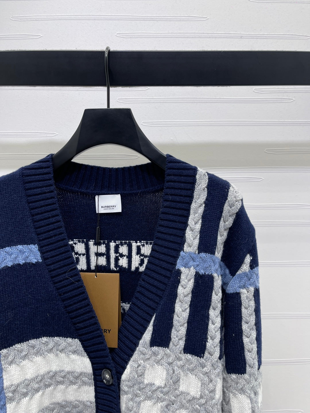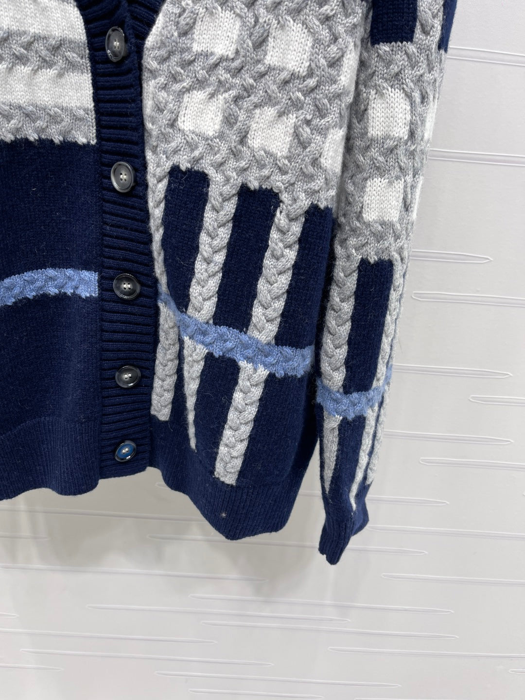 Burberry 25 V-neck Long-sleeved Cardigan Navy Blue Wool Cashmere